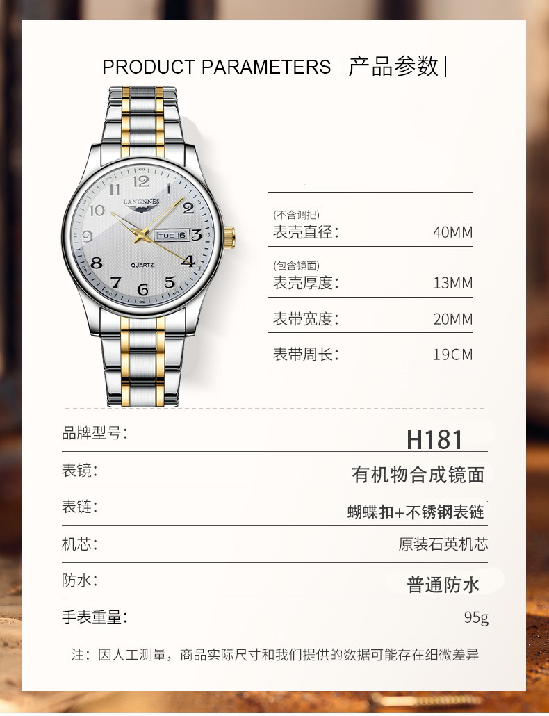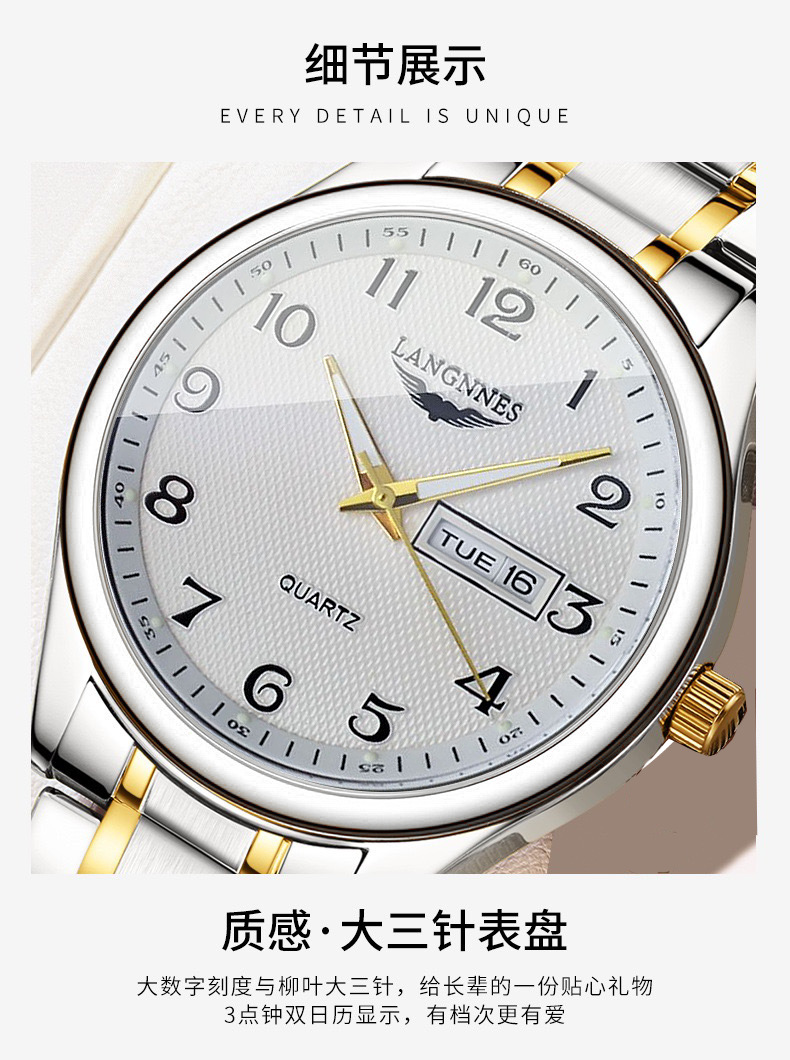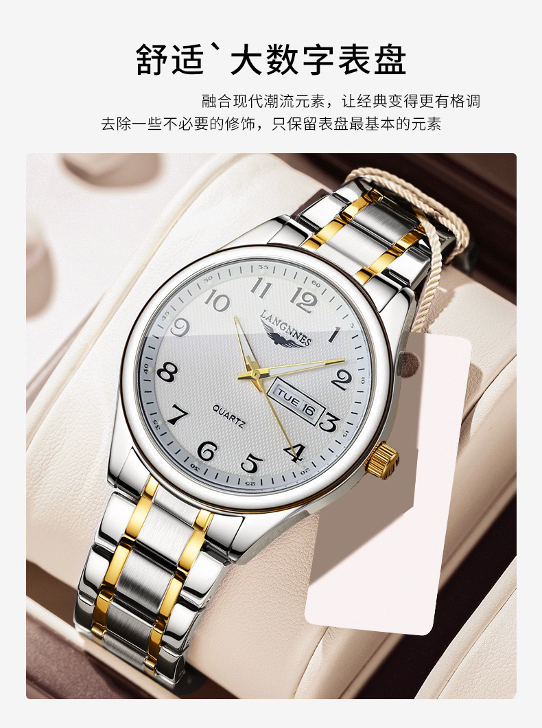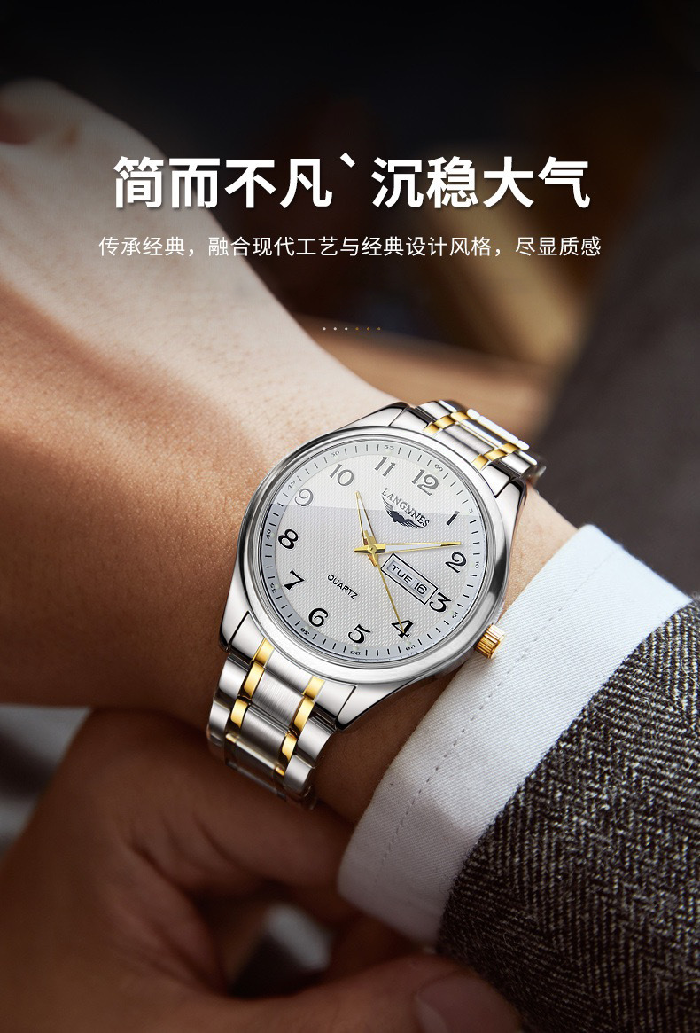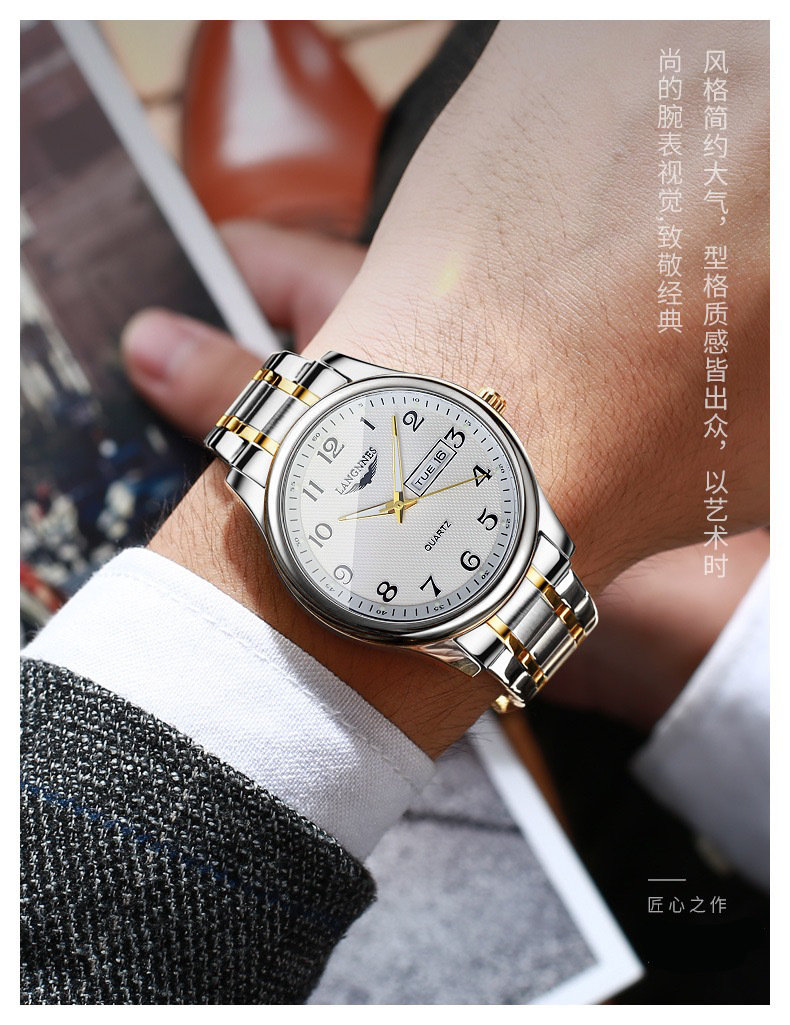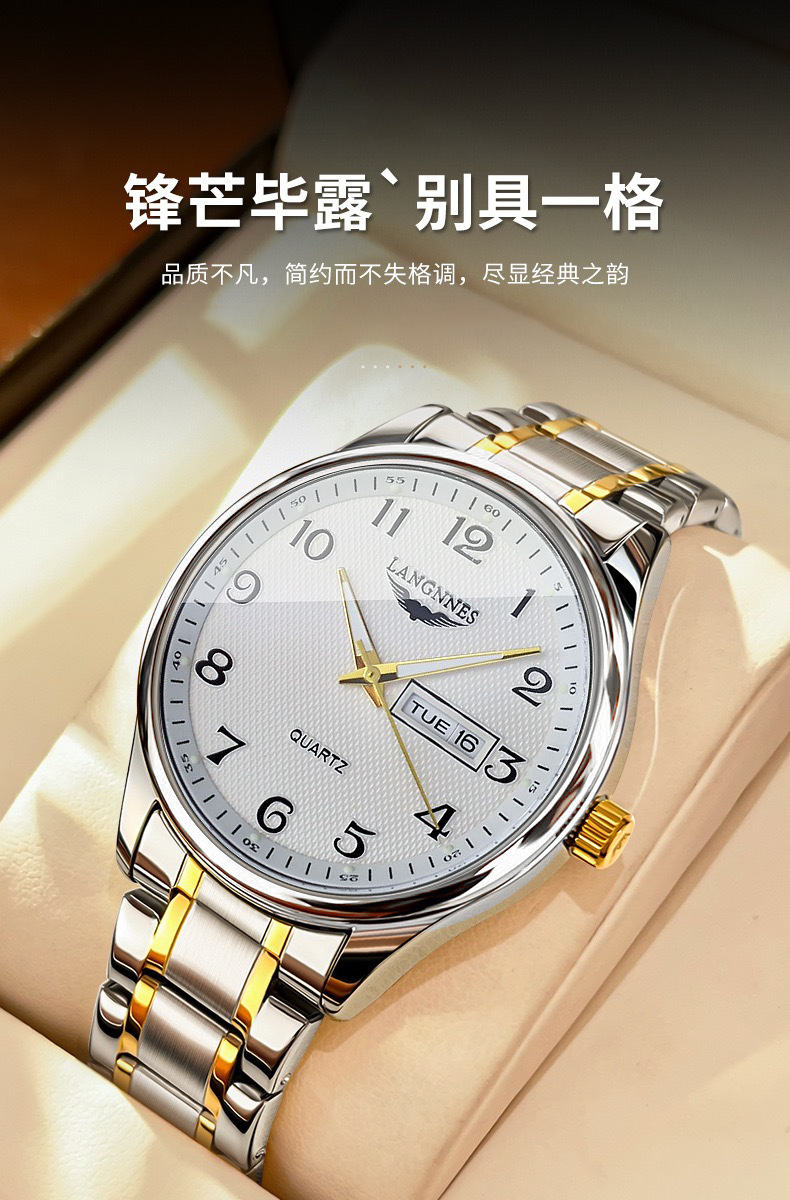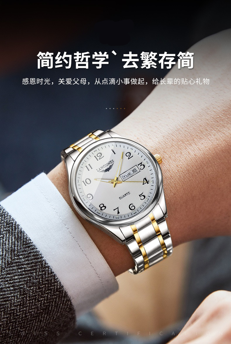 双日历星期男士手表瑞士非机械表款时尚腕表品牌高档全自动石英表