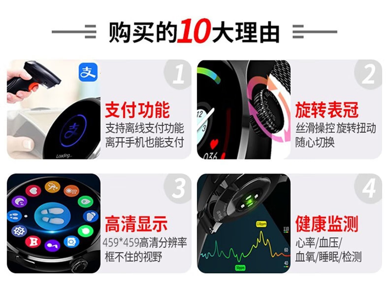 新款智能手表gt4pro华强北圆款计步运动健康蓝牙通话nfc离线支付