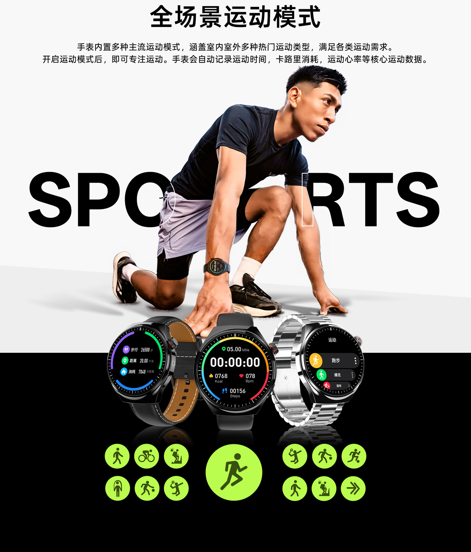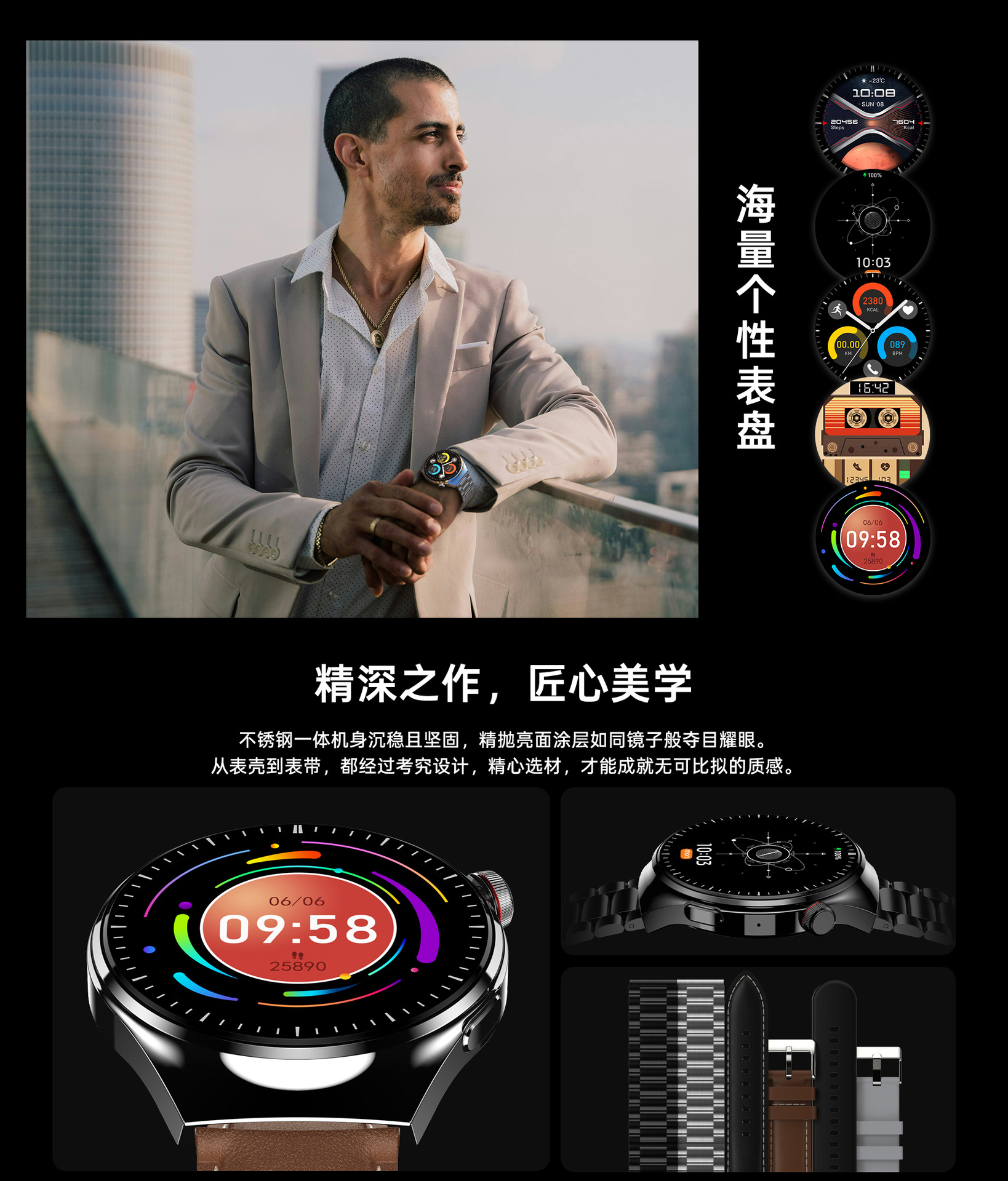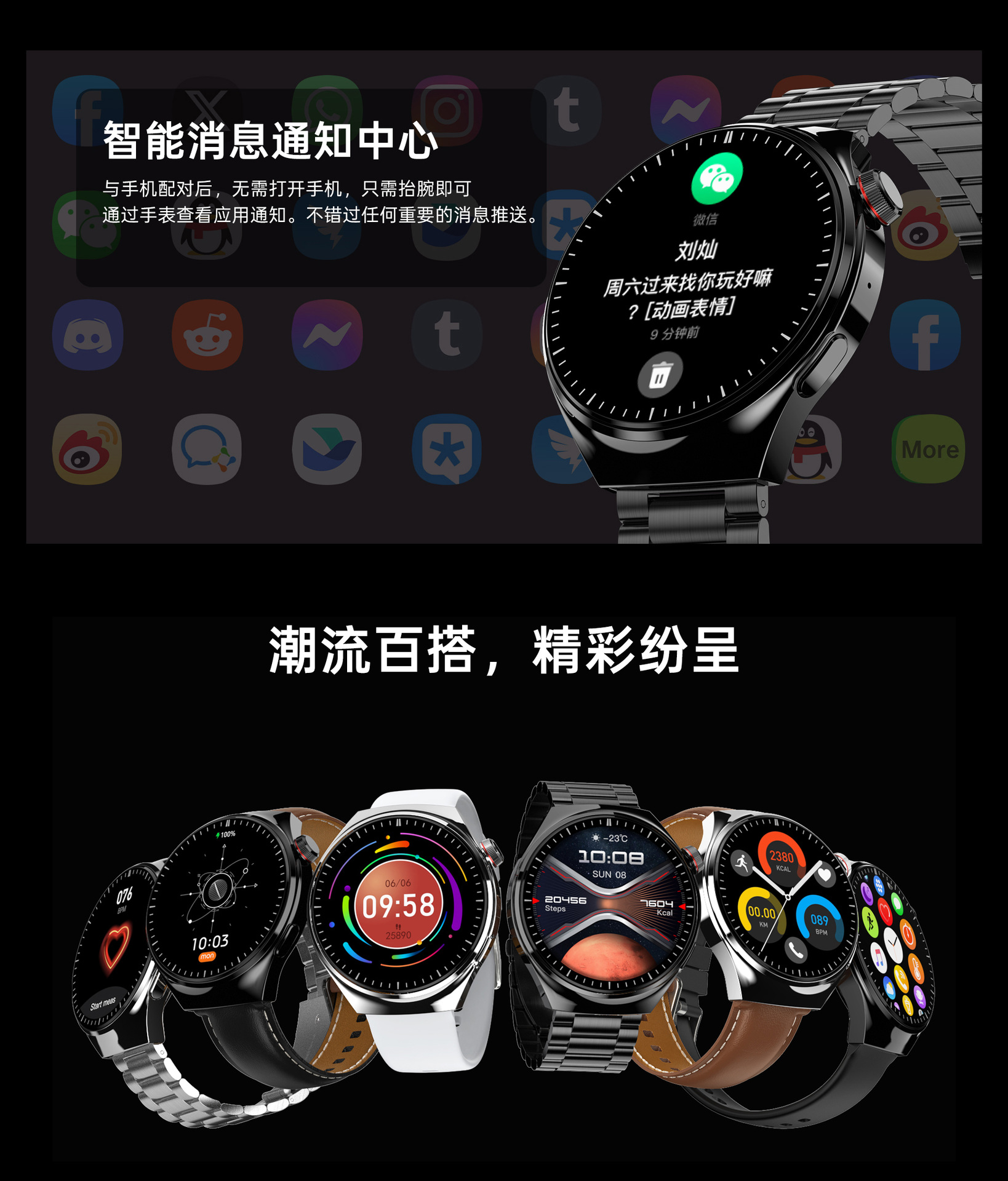 新款智能手表gt4pro华强北圆款计步运动健康蓝牙通话nfc离线支付