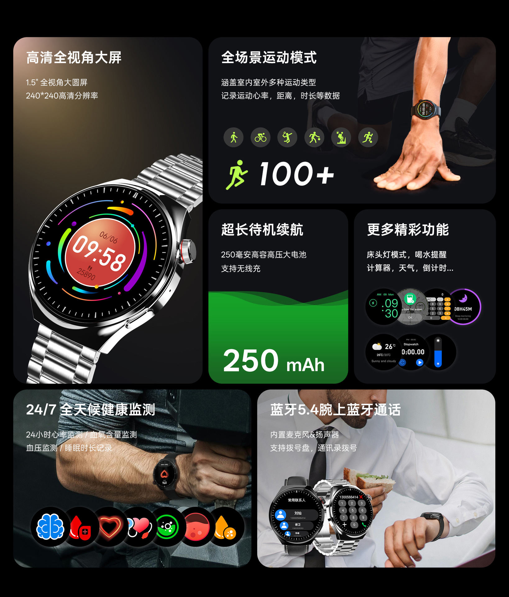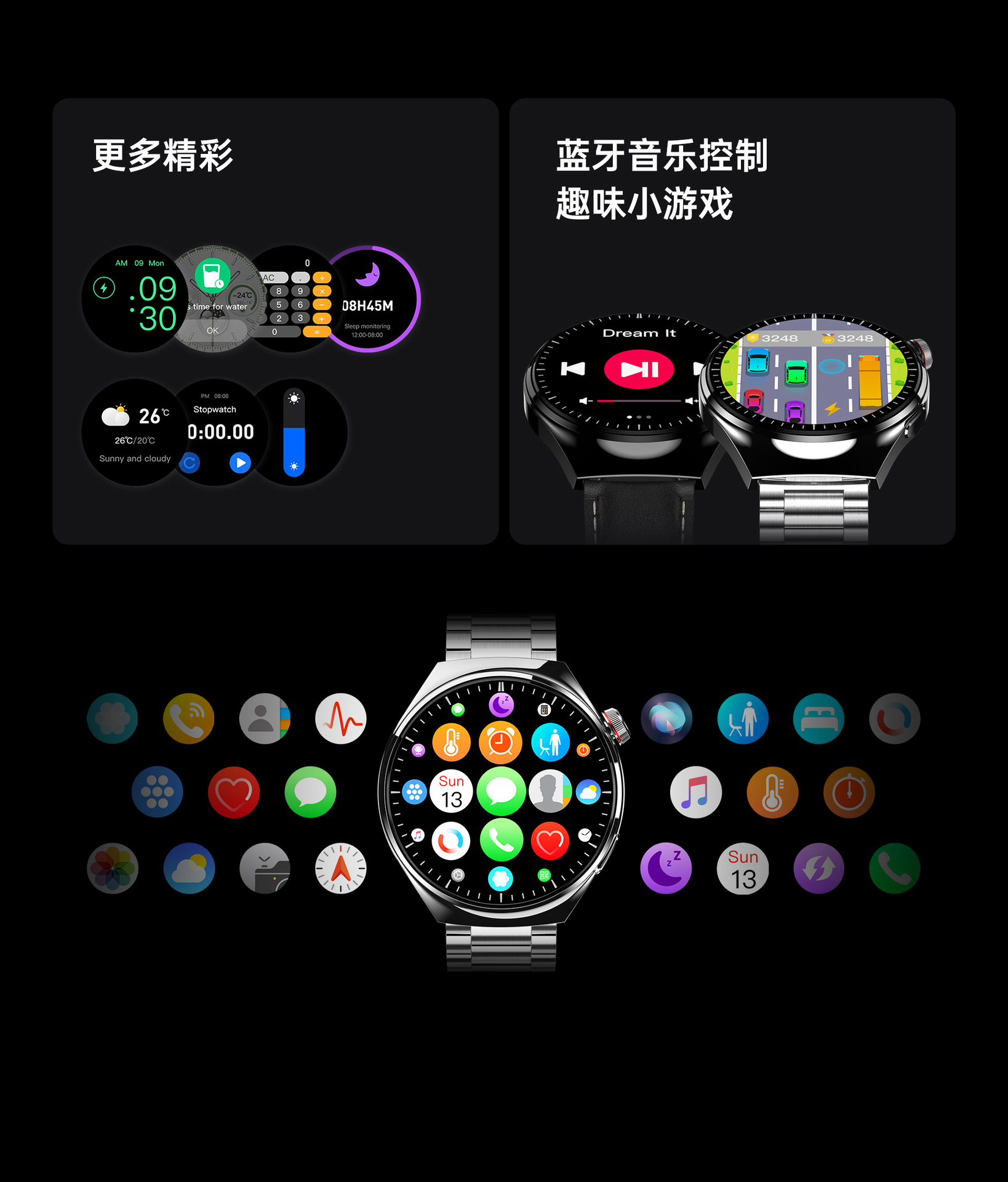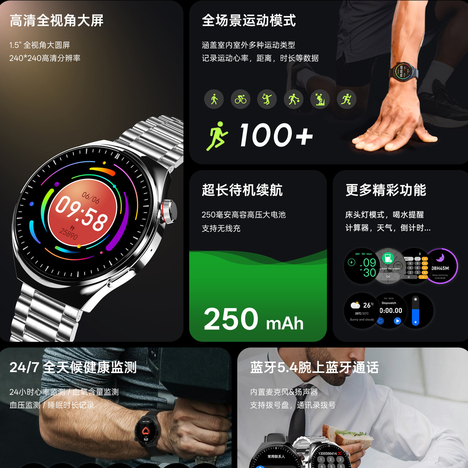 新款智能手表gt4pro华强北圆款计步运动健康蓝牙通话nfc离线支付