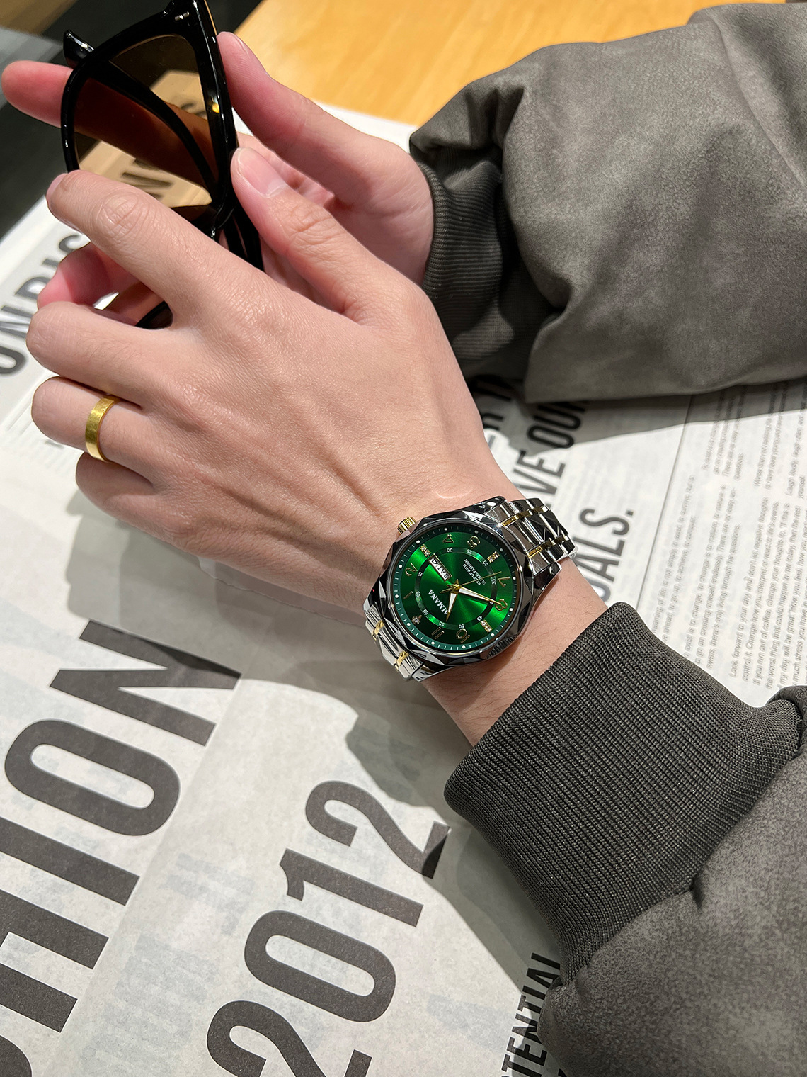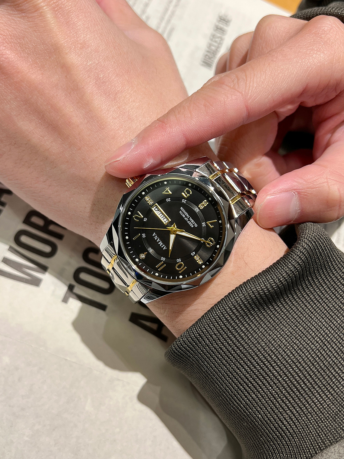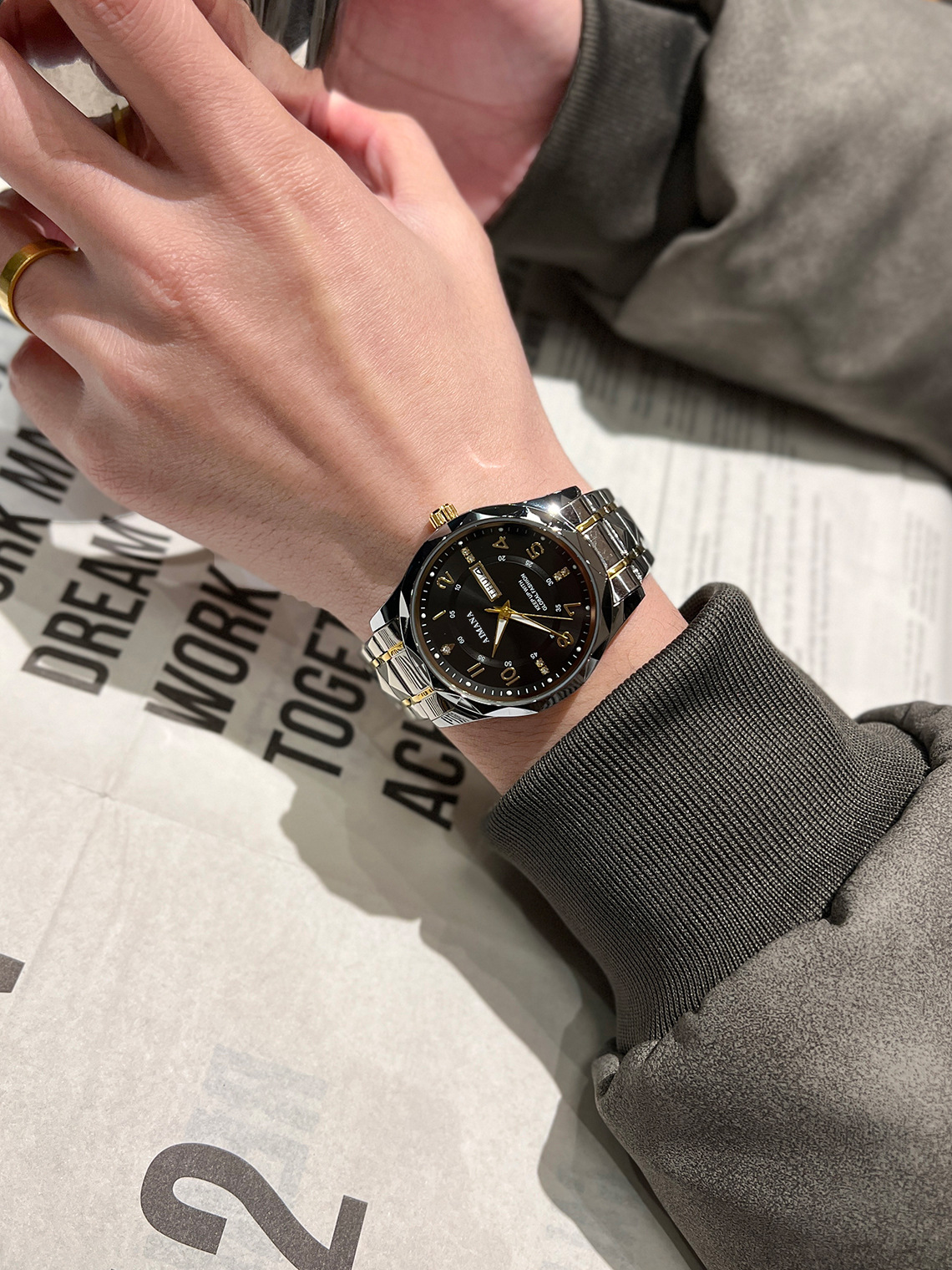 瑞士新款男士手表全自动防水休闲高档商务双日历手表男士夜光腕表