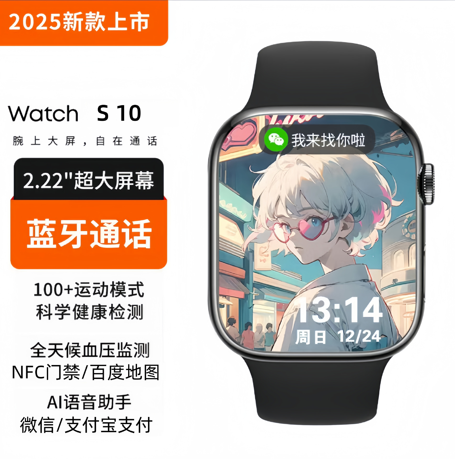 智能手表新款S10微信语音回复运动游泳防水血压蓝牙通话地图导航