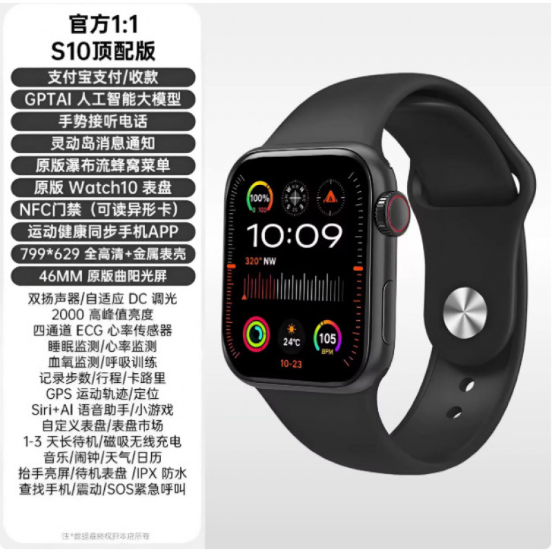 华强北顶配版WATCH10多功能智能手表黑科技支付防水运动手环男女