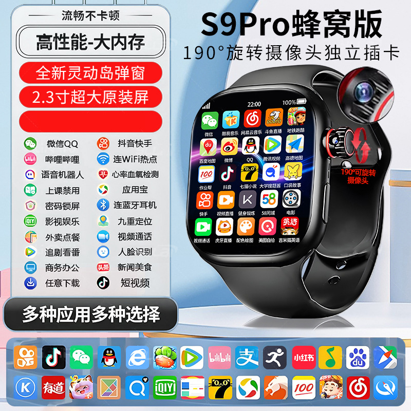- S9Pro黑✅旋转摄像-128G内存+微Q抖+下载APP+灵动岛+人脸识别+支付+录像+截图