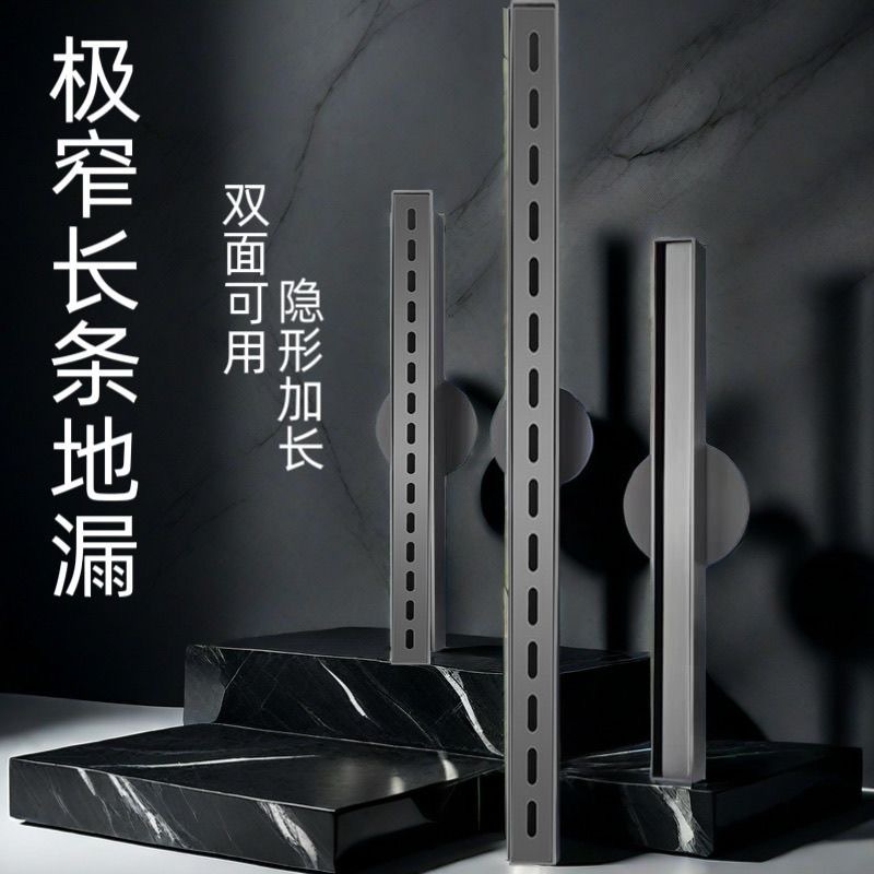 极窄线型灰色加长地漏防臭卫生间不锈钢长方形长条形极简线性新款