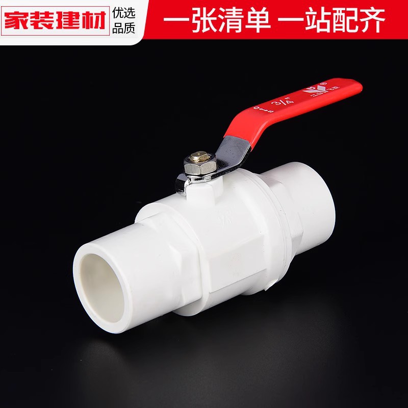 PVC球阀钢把手易拧开关202532405063止水阀塑料鱼缸水管配件硬管