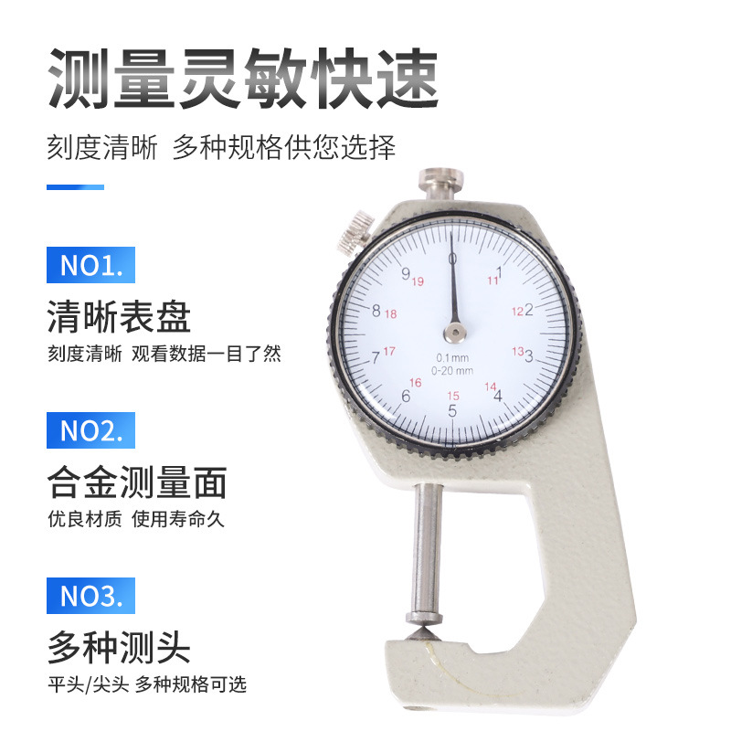 C-15平头测厚仪0-20mm测厚规指针式测量珍珠木材厚度