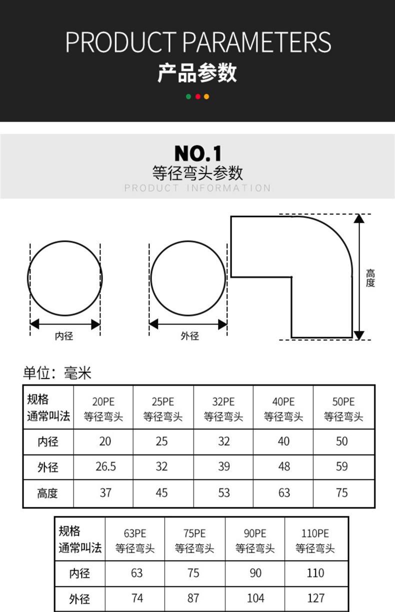 pe弯头90度等径接头热熔管件20253250631104分自来水管配件