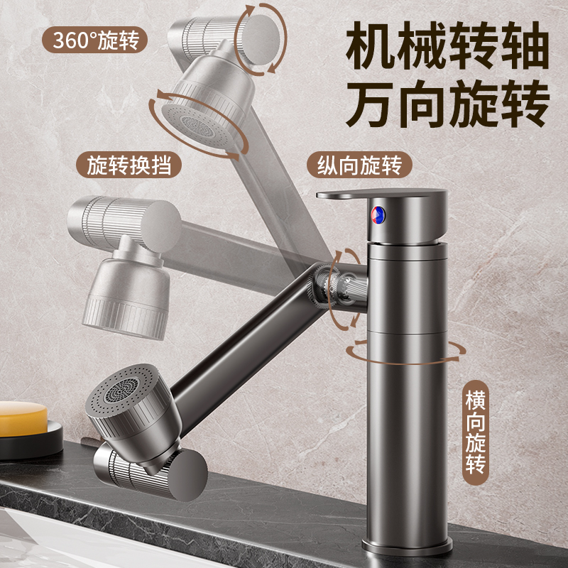 机械臂水龙头洗脸盆万向冷热水池家用卫生间面盆台盆超矮可旋转