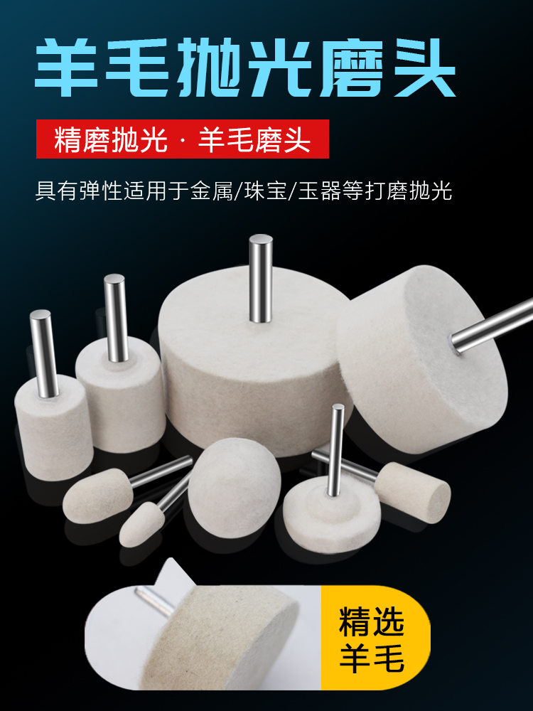羊毛抛光打磨头带柄羊毛轮抛光球镜面玉石金属翡翠工具打磨神器