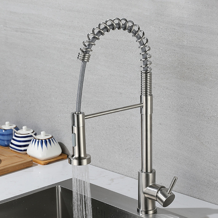 304不锈钢厨房菜盆弹簧抽拉龙头冷热混水两档出水水槽洗碗盆龙头