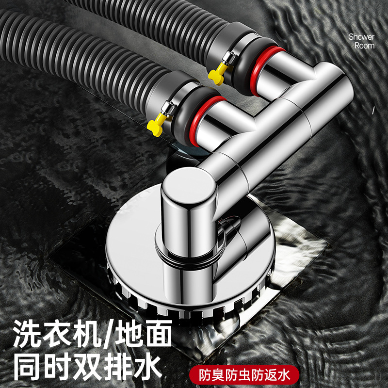 洗衣机排水管地漏接头防臭防溢水二合一下水管道三头通双排水