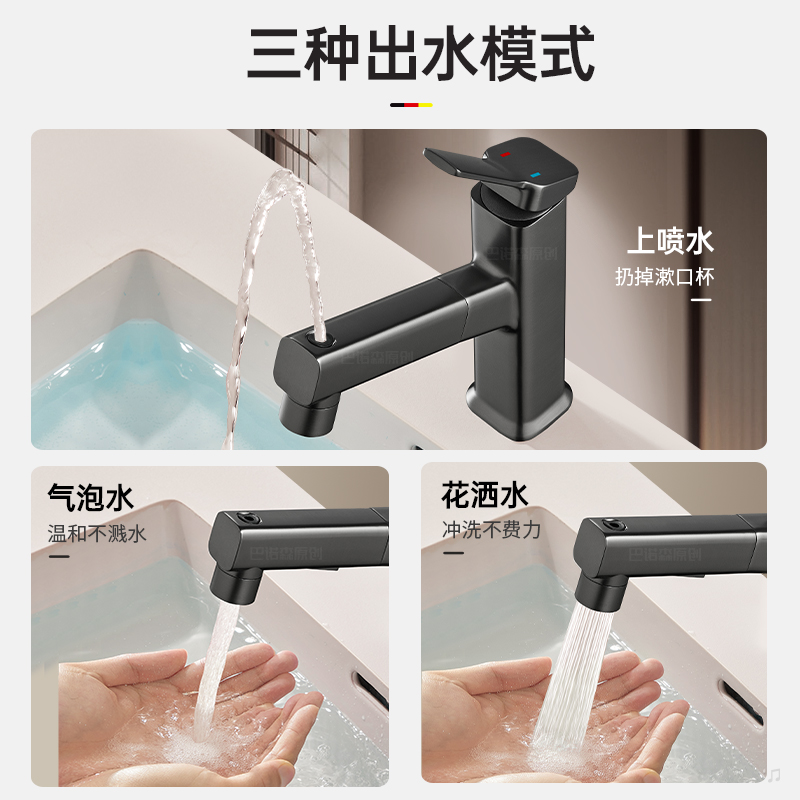 卫生间洗脸盆水龙头冷热抽拉式两用浴室柜洗手盆面台盆家用全铜