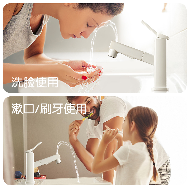 全铜洗脸盆抽拉式水龙头奶油白家用洗漱浴室台盆冷热面盆手池龙头
