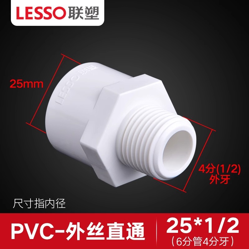 - 联塑25*1/2外丝直通【6分管4分牙】