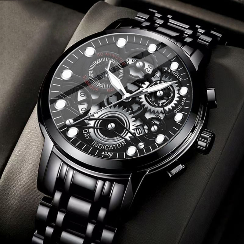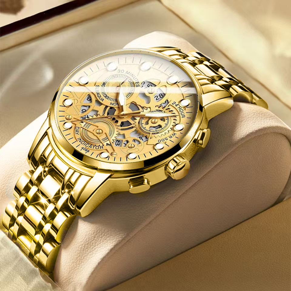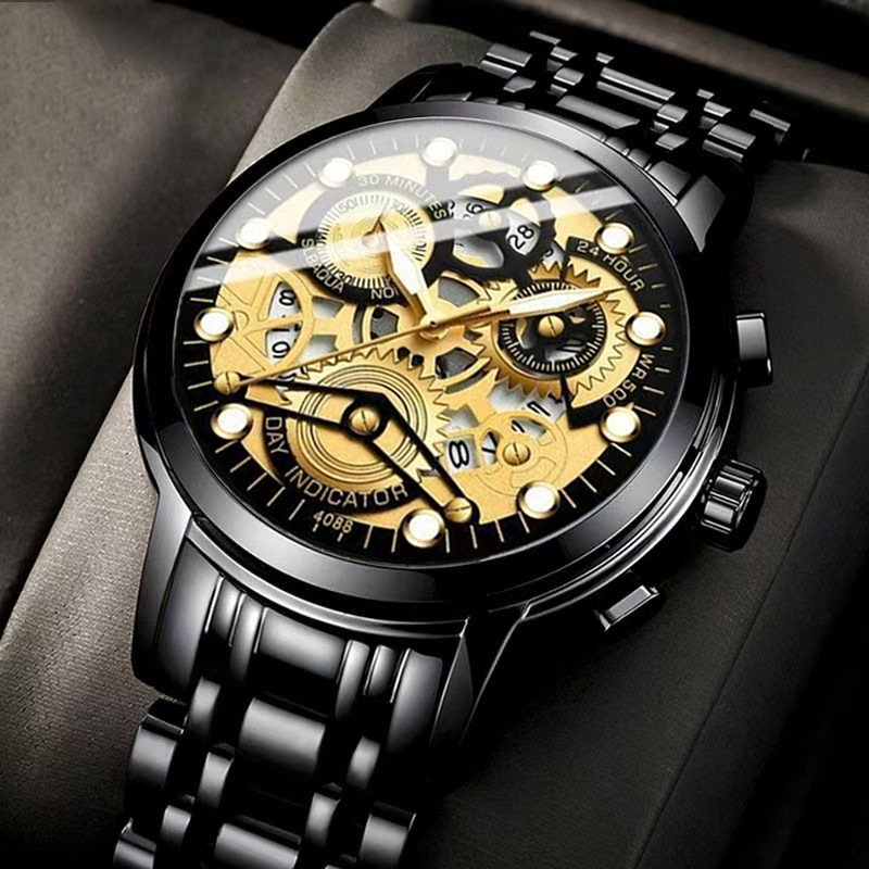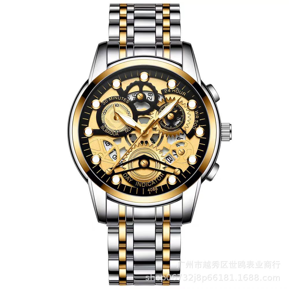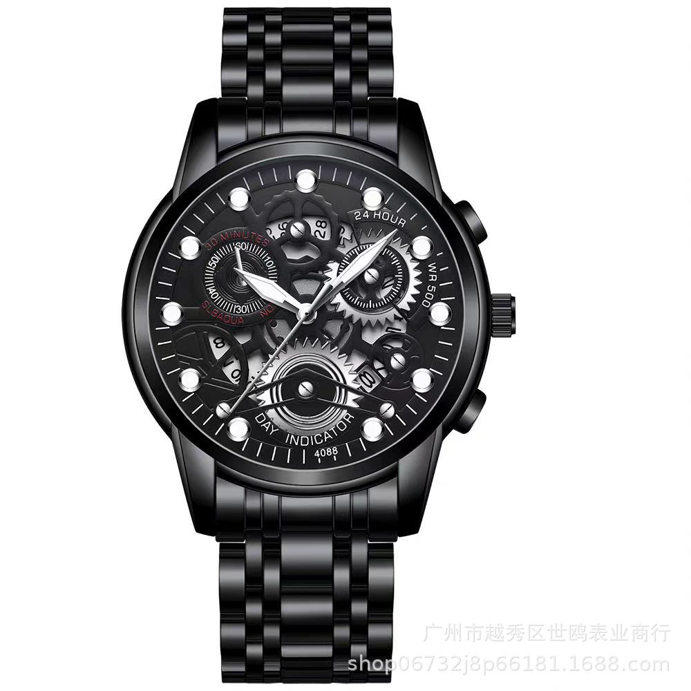 KASRLUO品牌石英机芯镂空防水手表男士欧美时尚日历手表男
