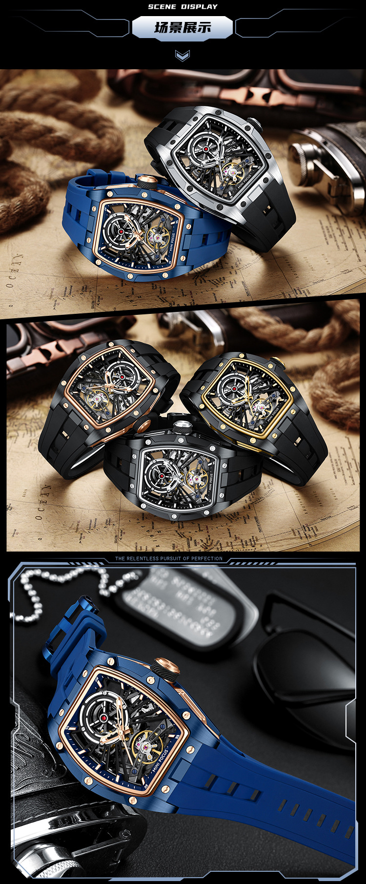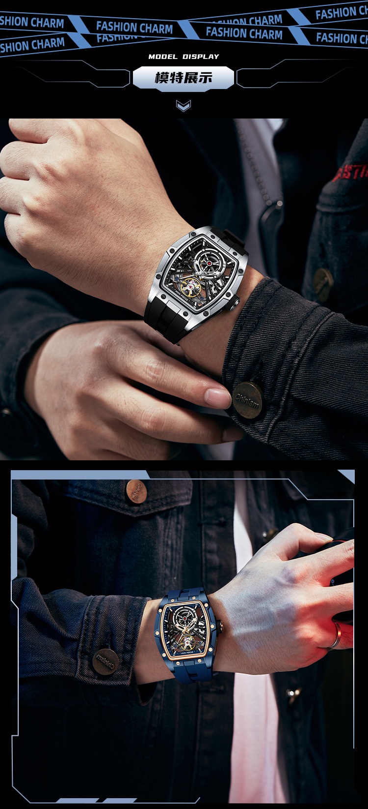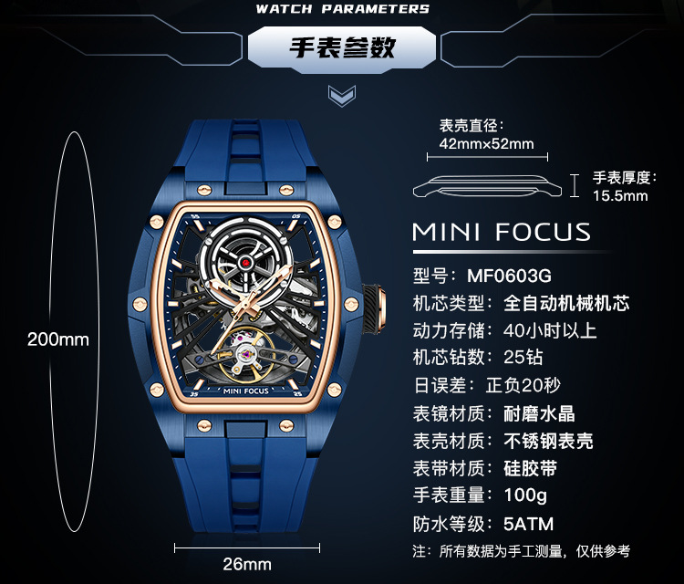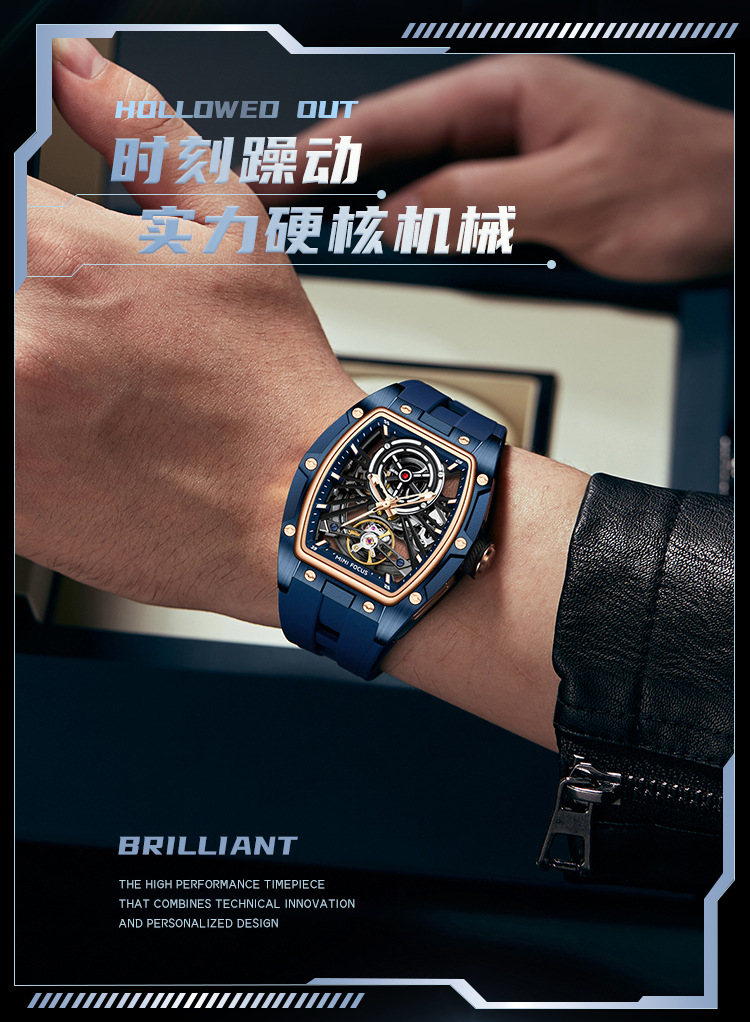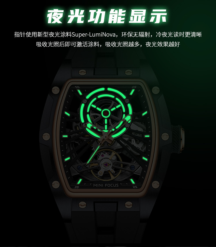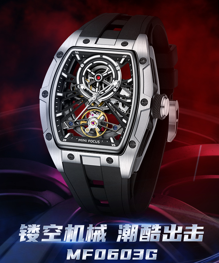 MINIFOCUS手表爆款酒桶男表钢壳全镂空自动机械表男手表0603G