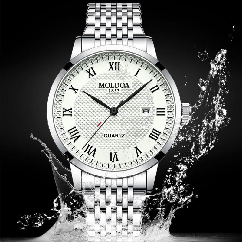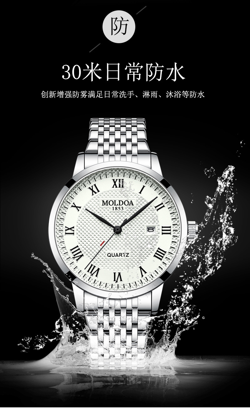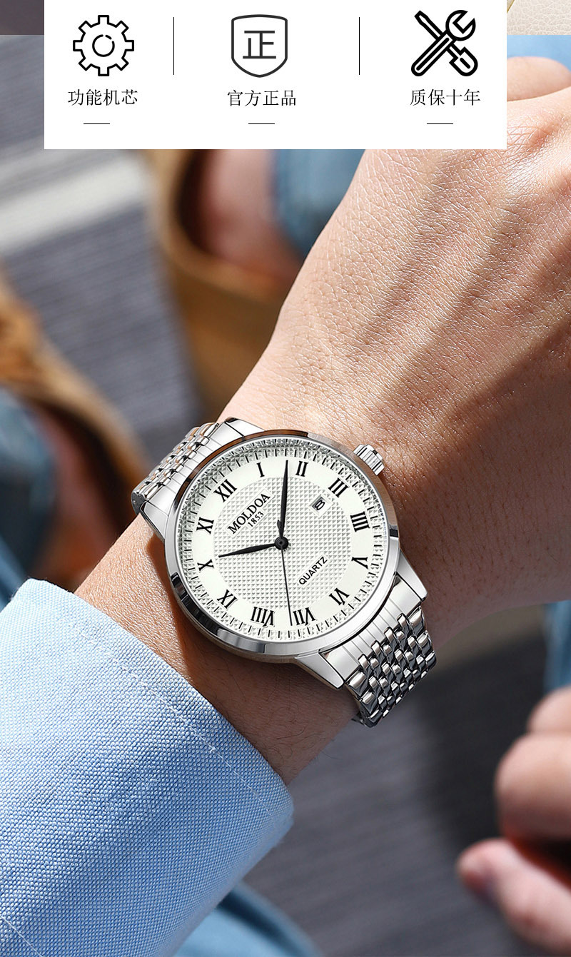 手表男士品牌双日历防水夜光全自动假机械时尚潮流钢带石英男款表