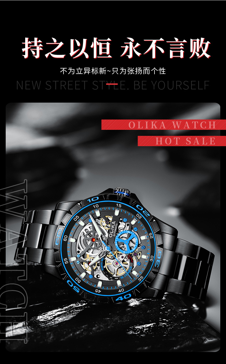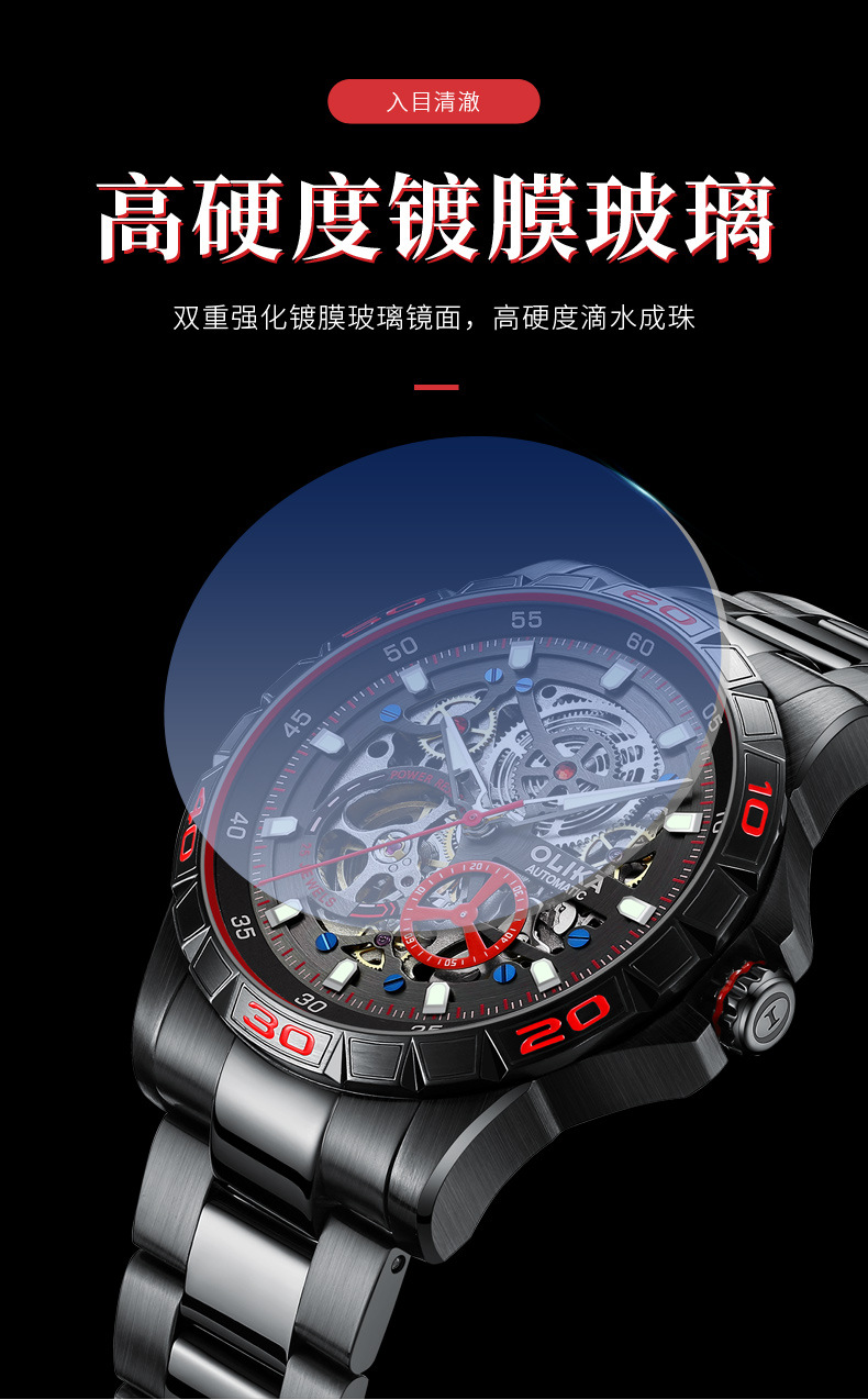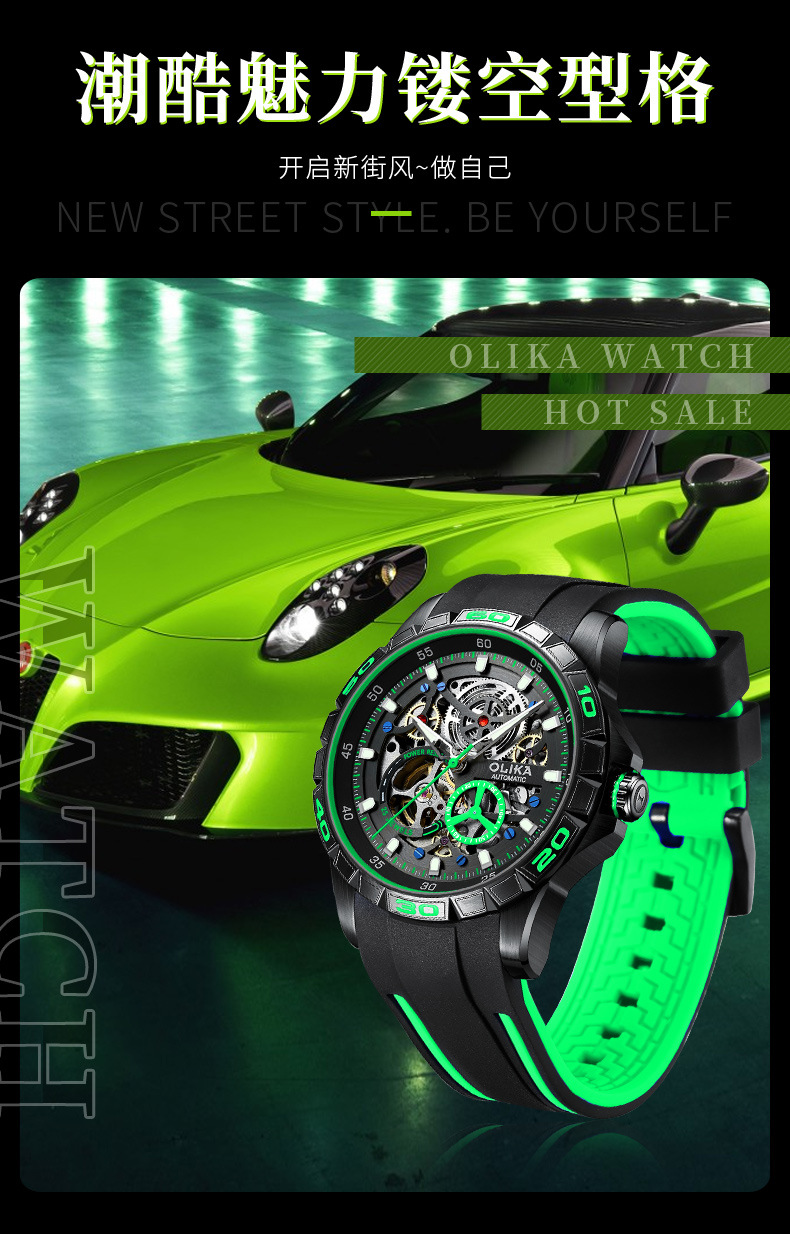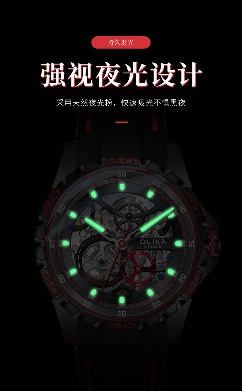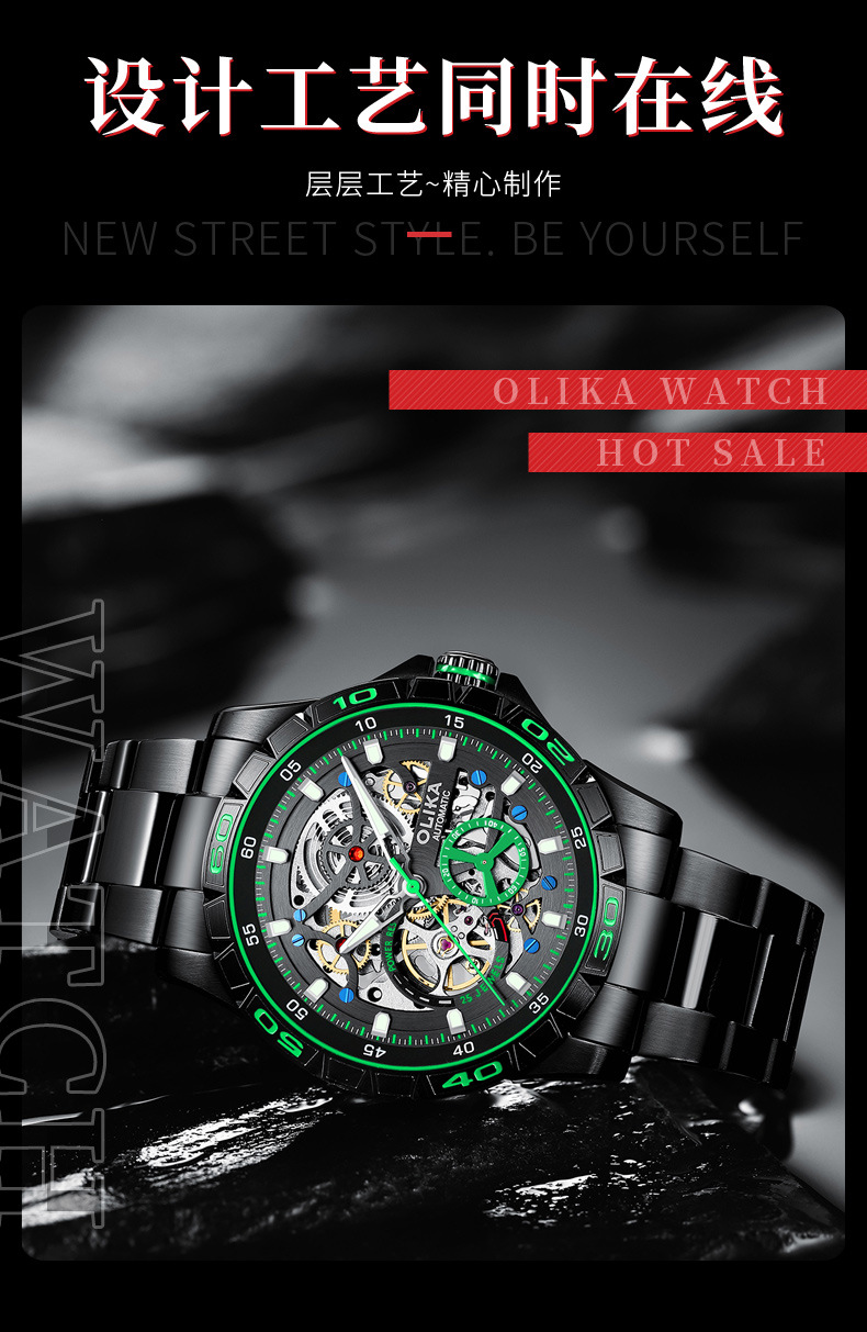 沃力仕新款时尚夜光男士全自动机械表潮流复古表男表