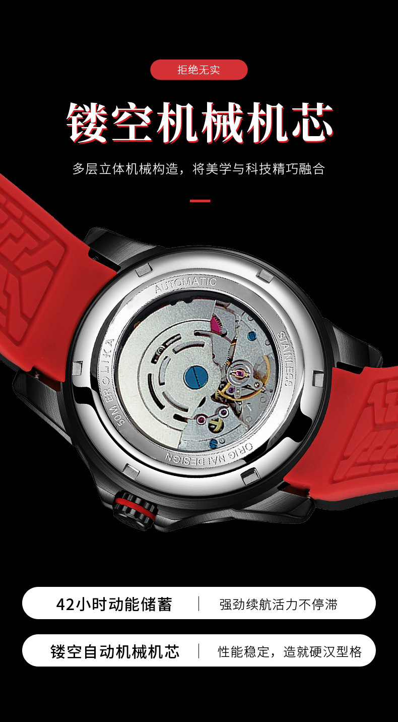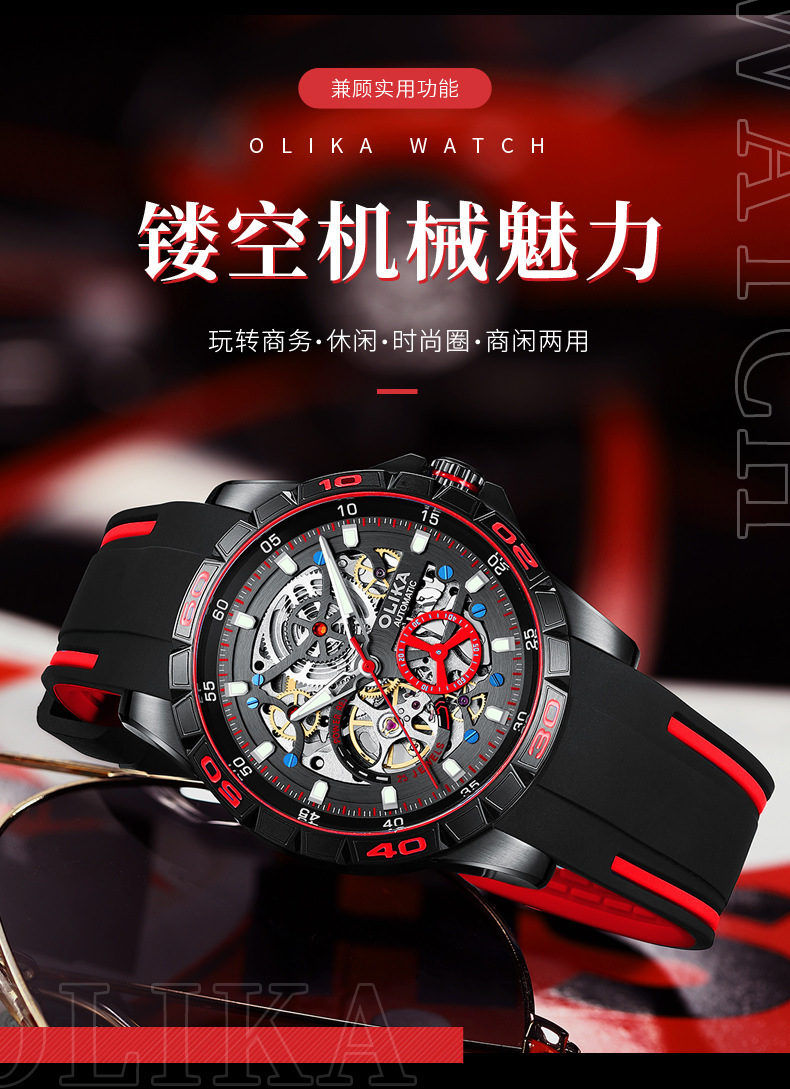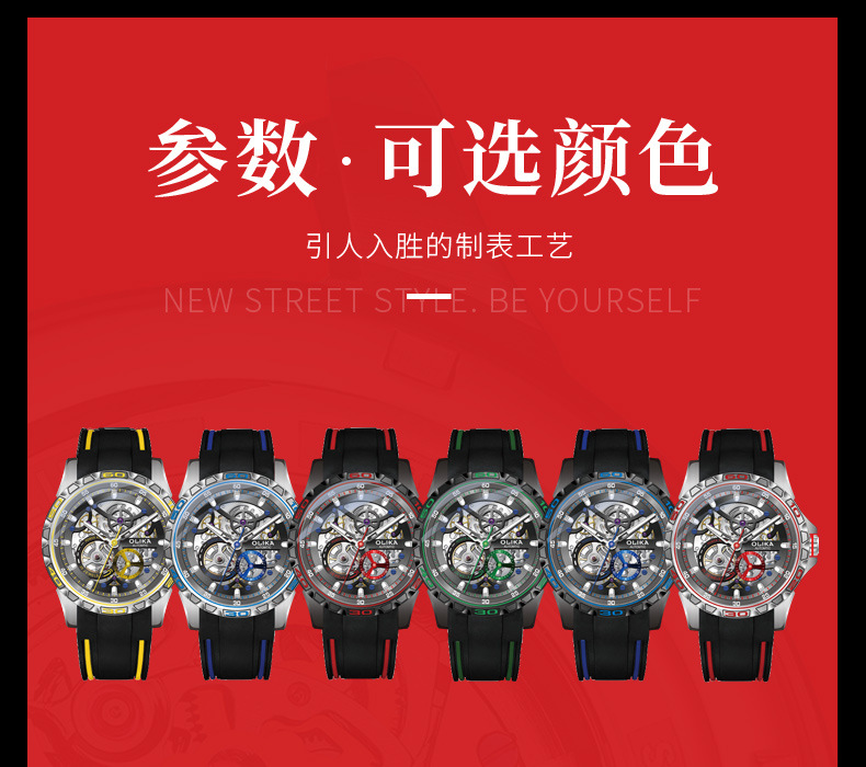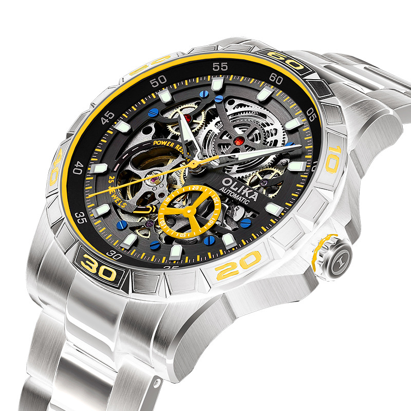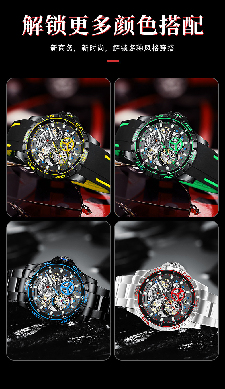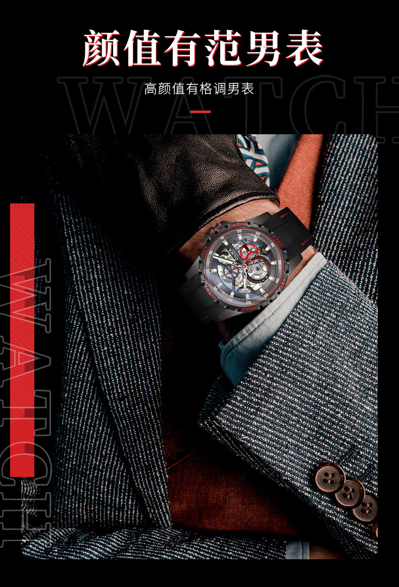 沃力仕新款时尚夜光男士全自动机械表潮流复古表男表