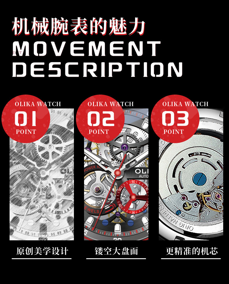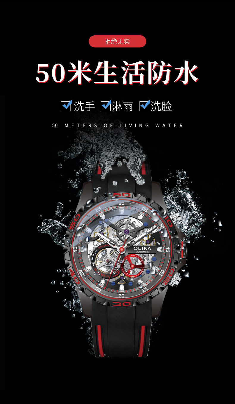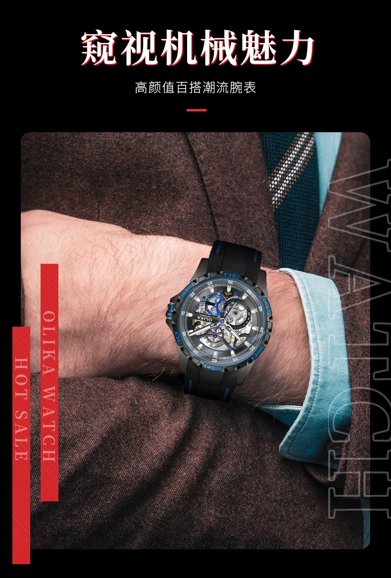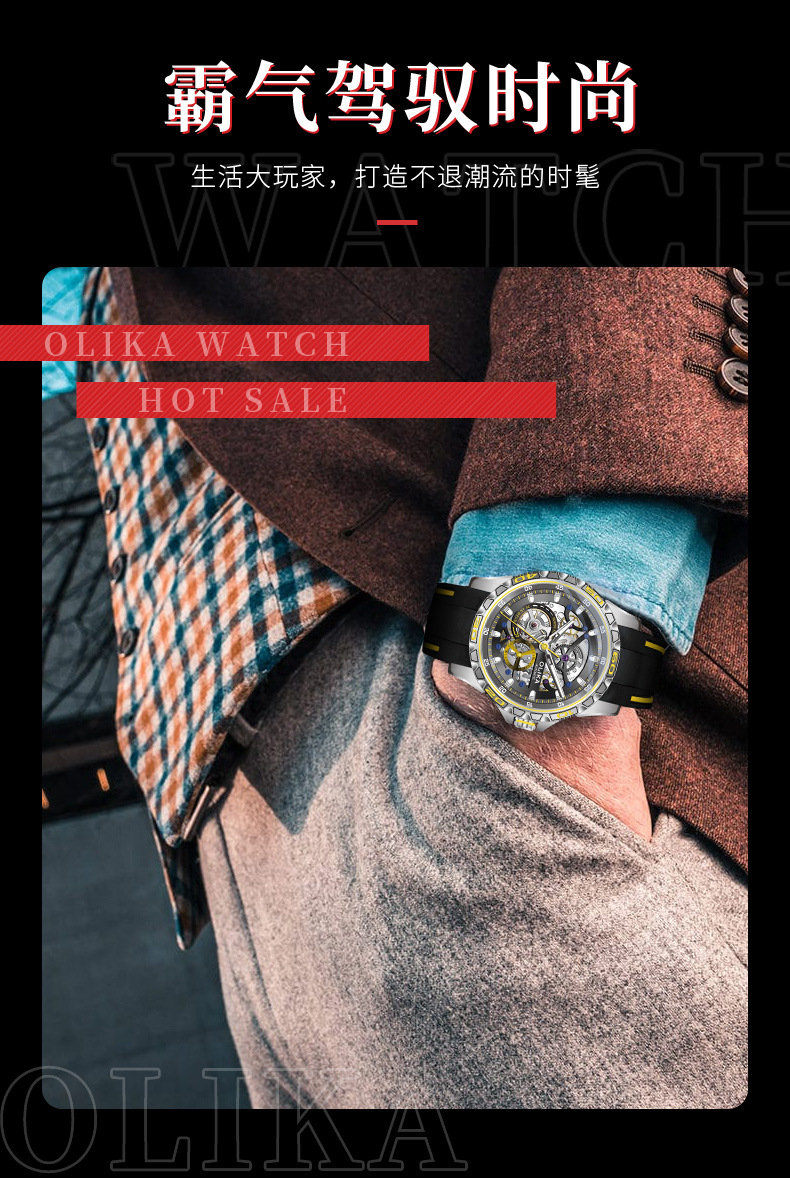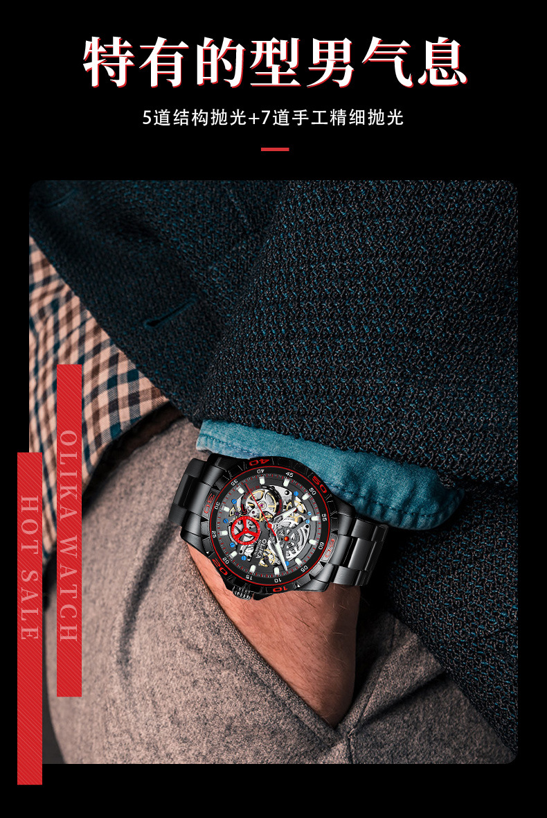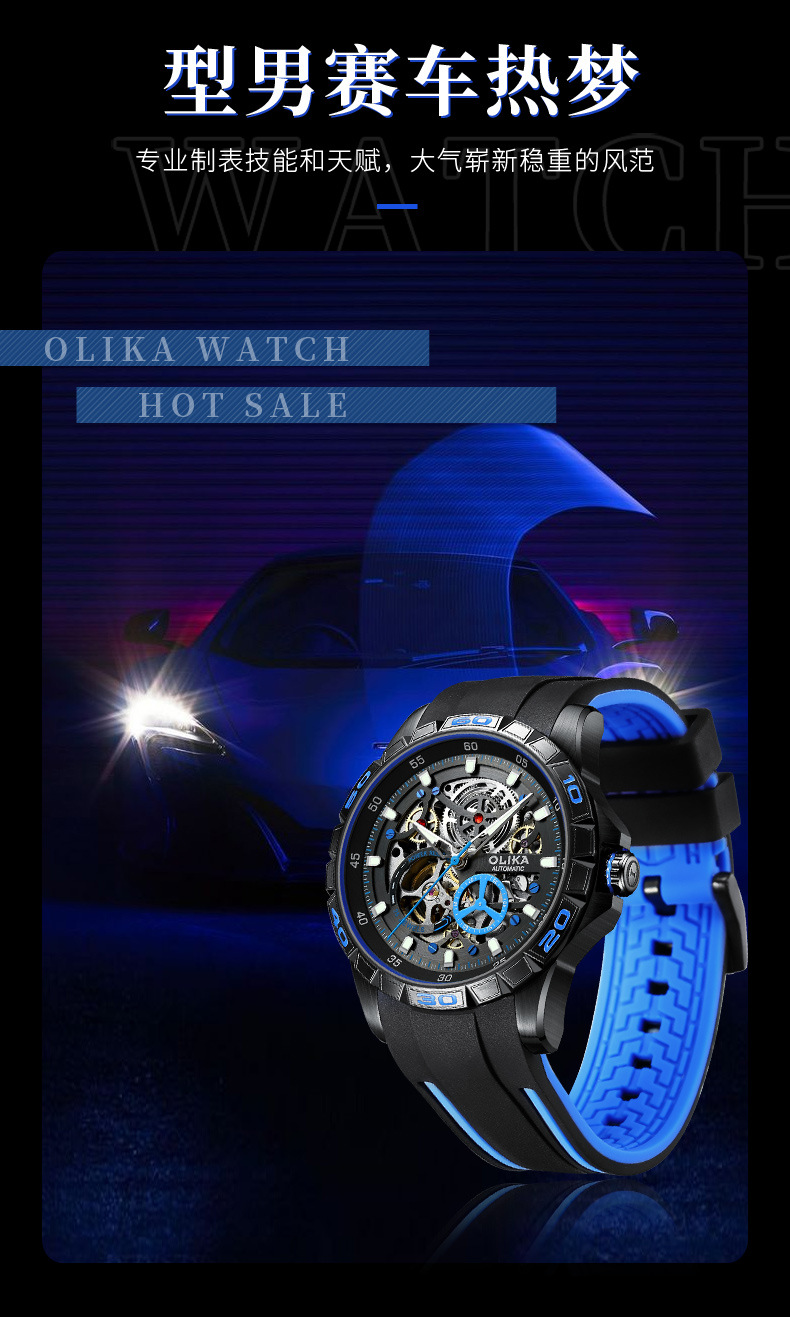 沃力仕新款时尚夜光男士全自动机械表潮流复古表男表