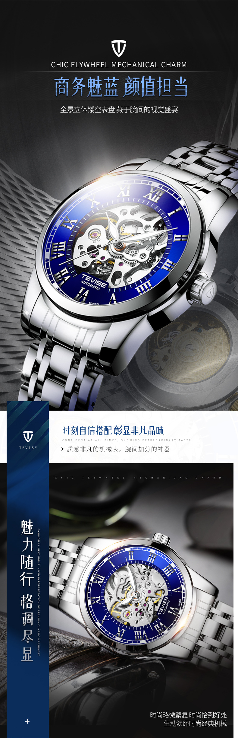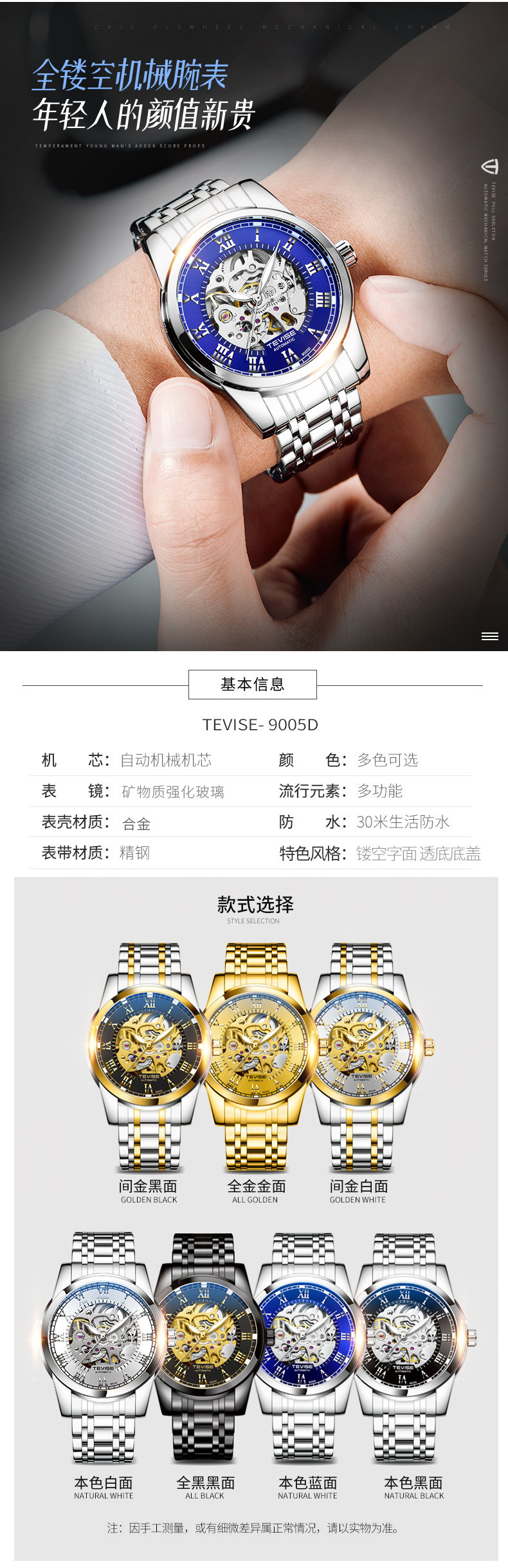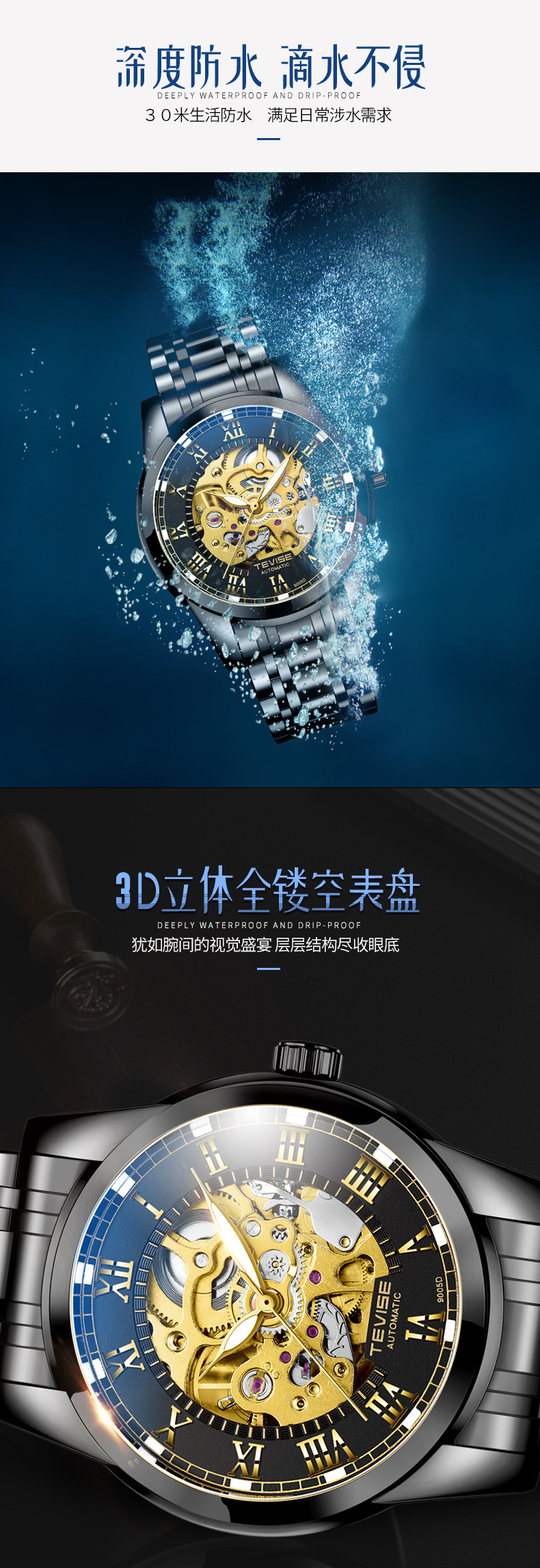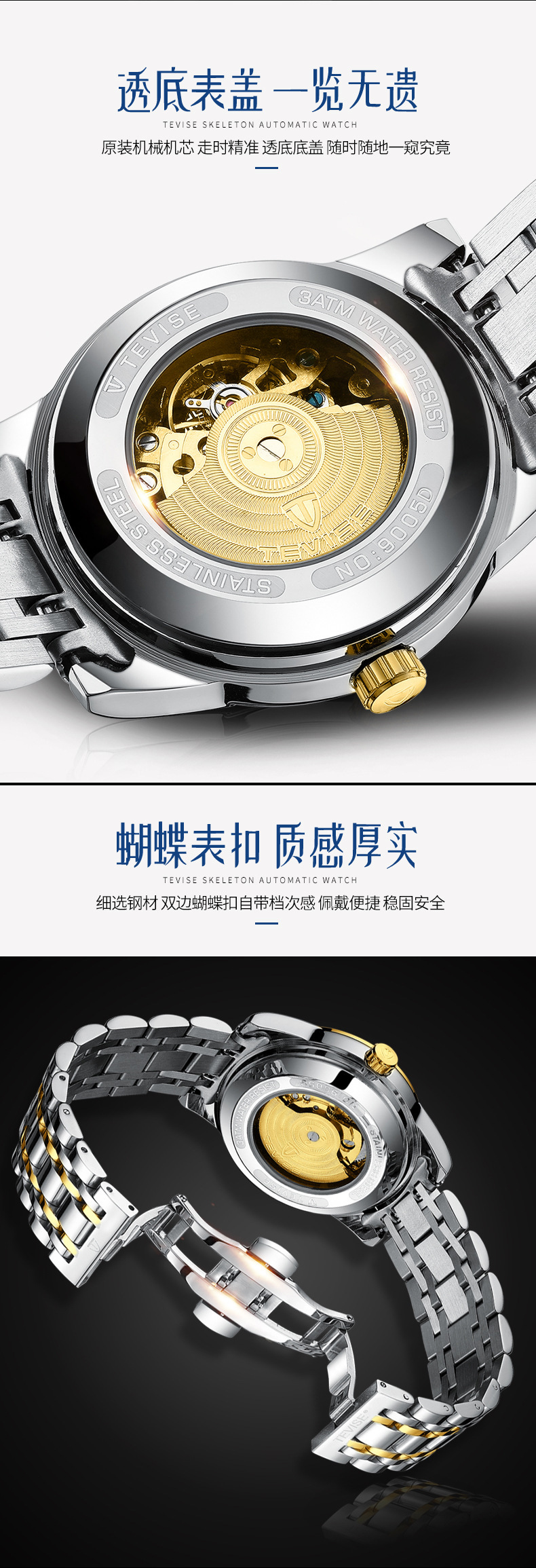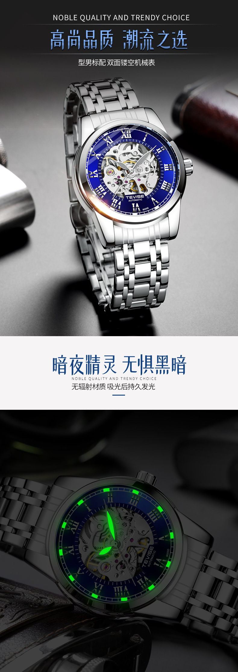2025特威斯防水手表男士全自动商务简约时尚镂空机械表夜光