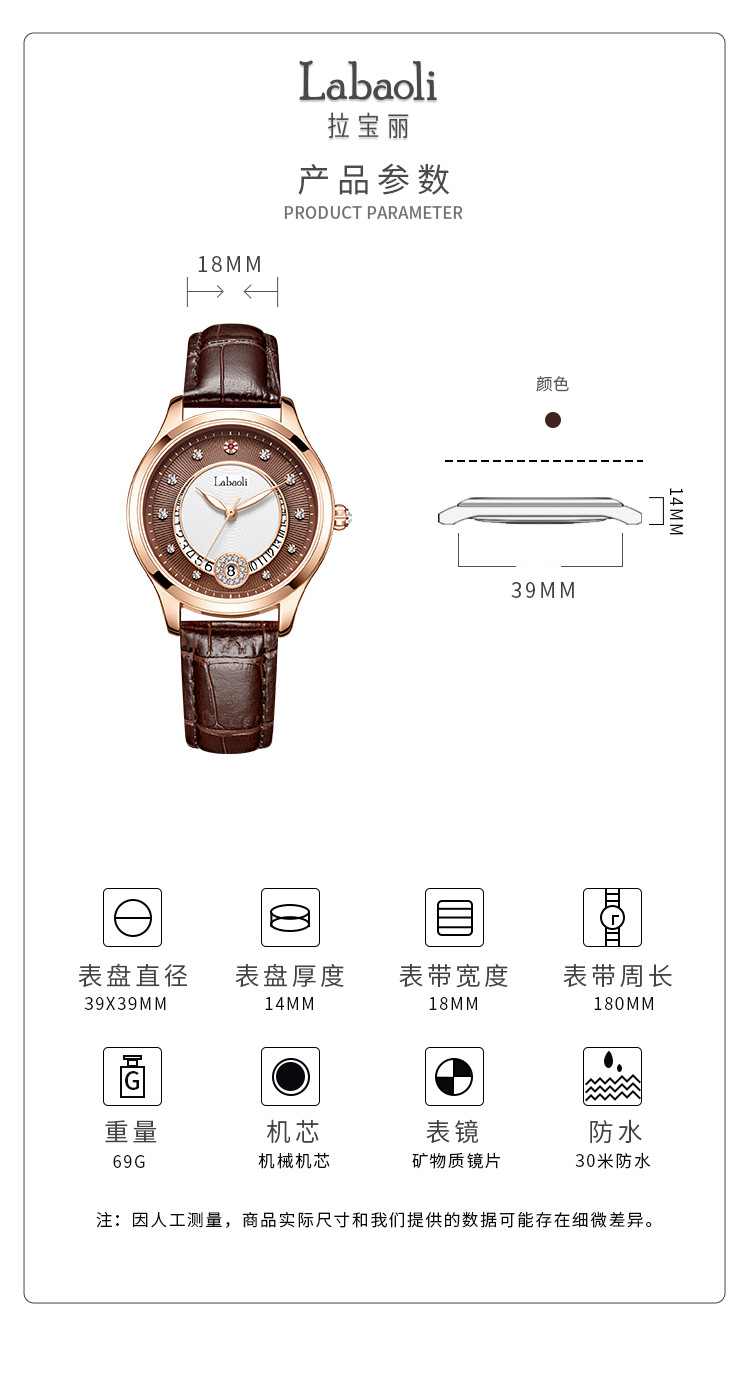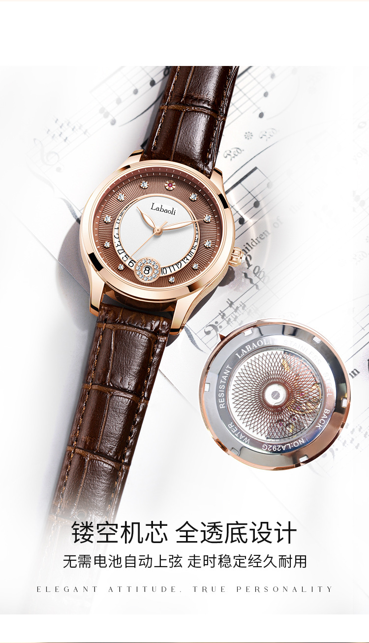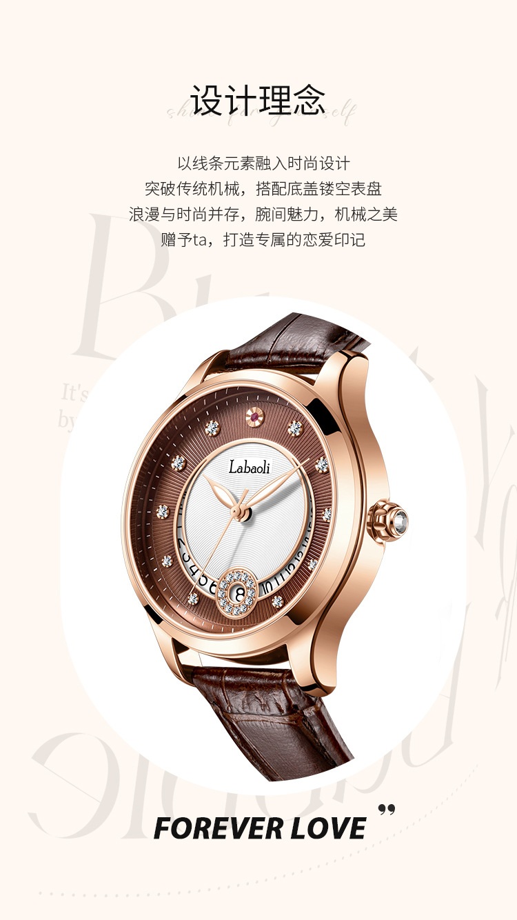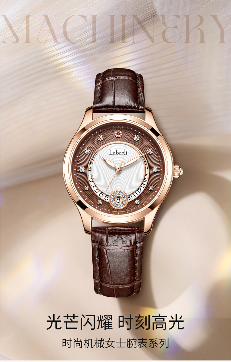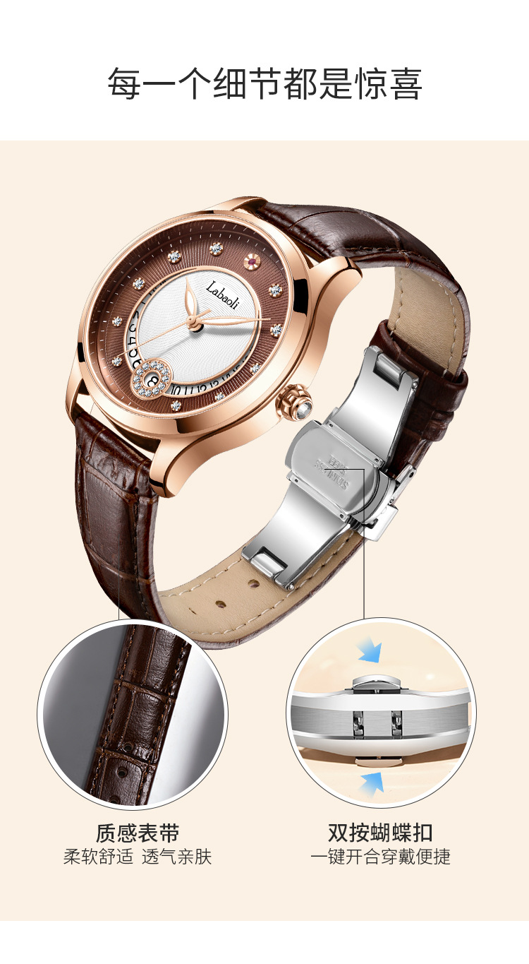拉宝丽手表轻奢女士直播爆款女表防水机械表镂空底蝴蝶扣