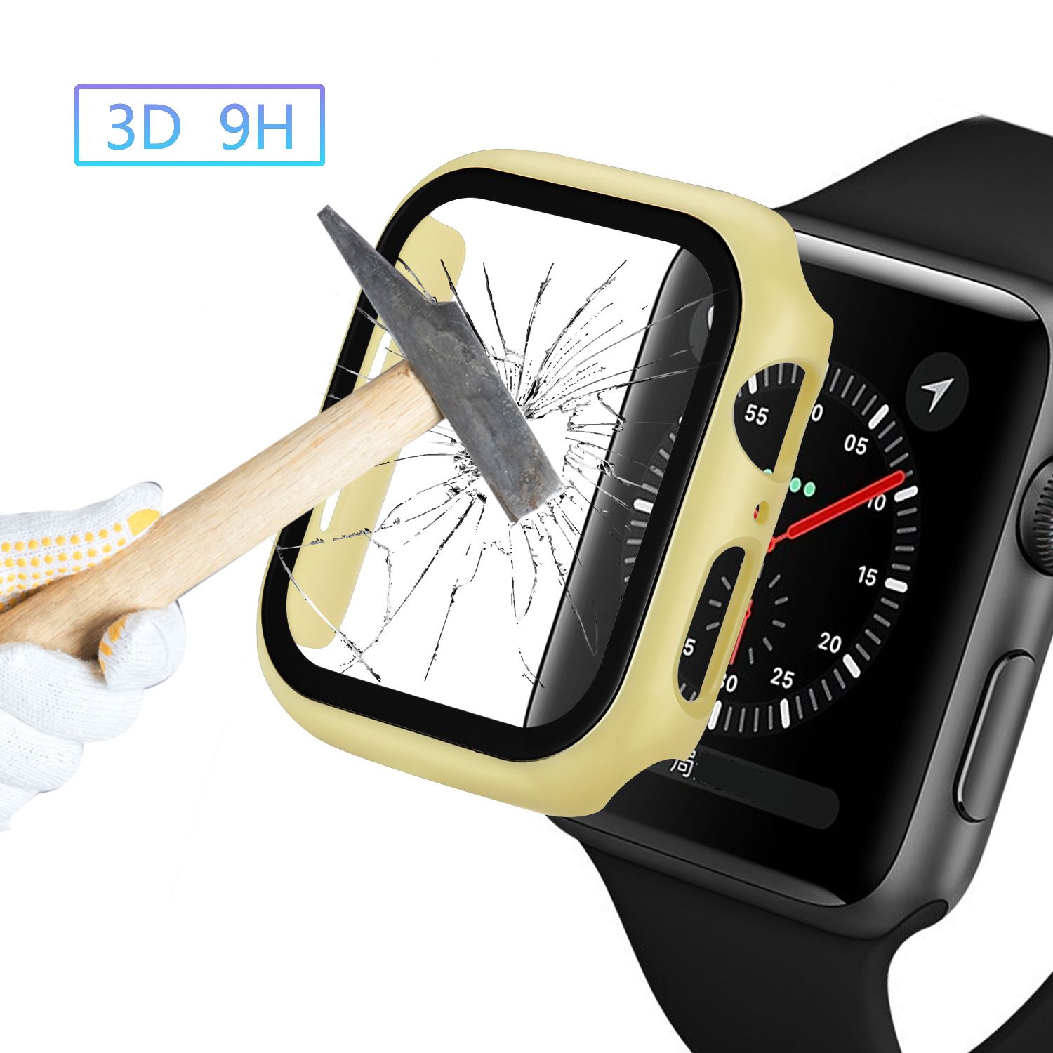 适用苹果手表壳iwatch7/se/6/5/4321保护壳PC+钢化膜一体保护壳