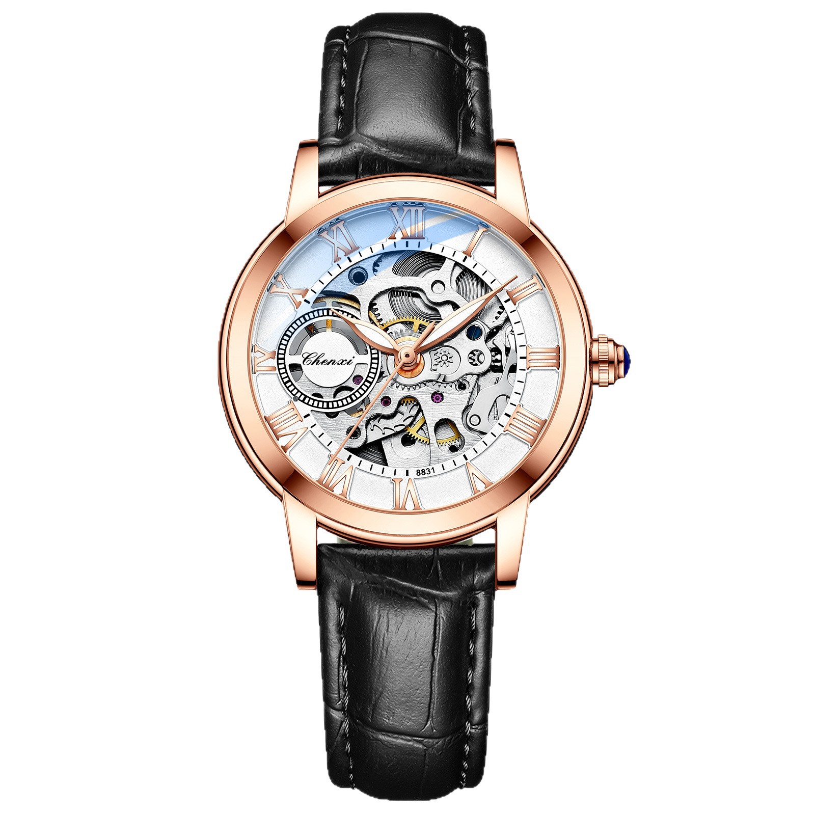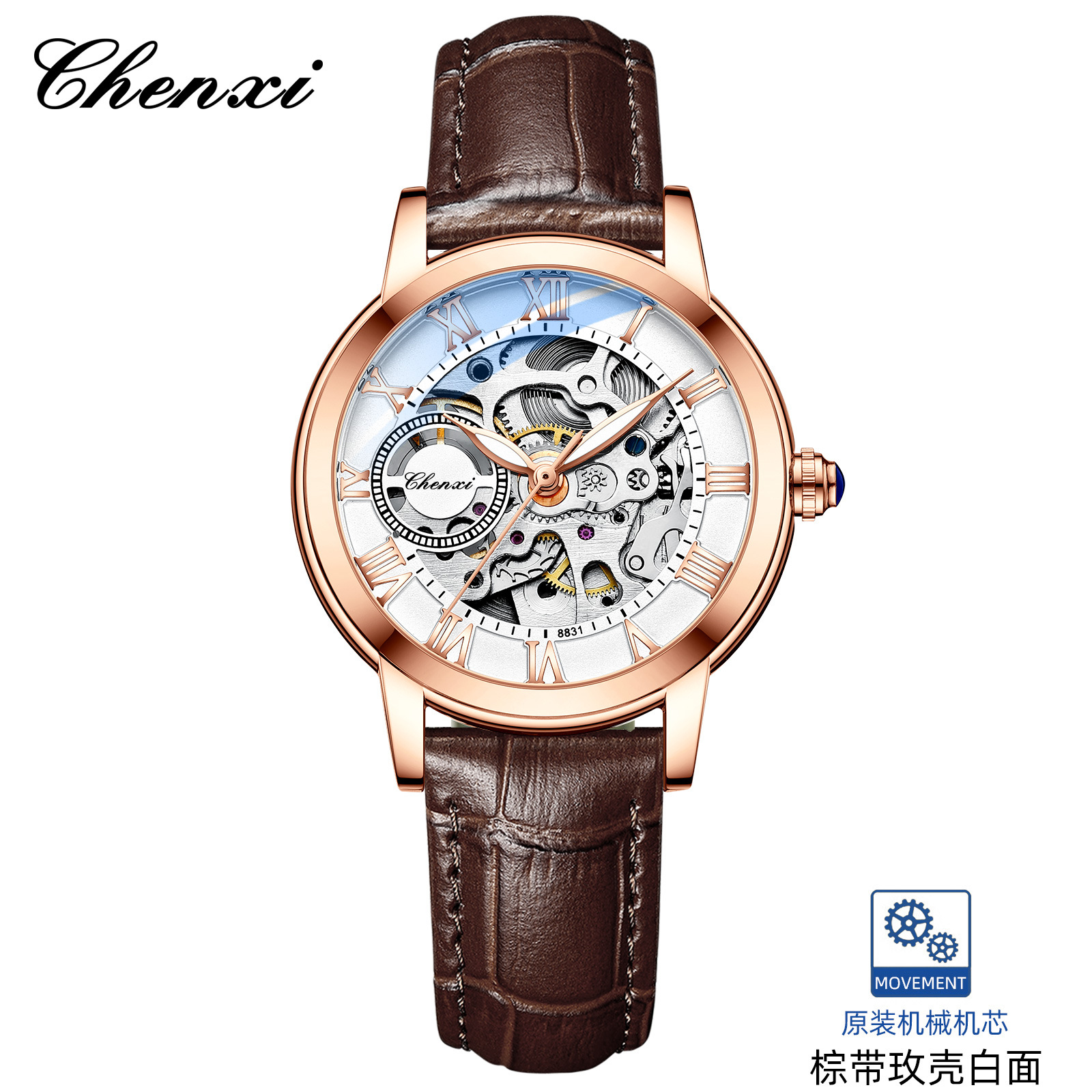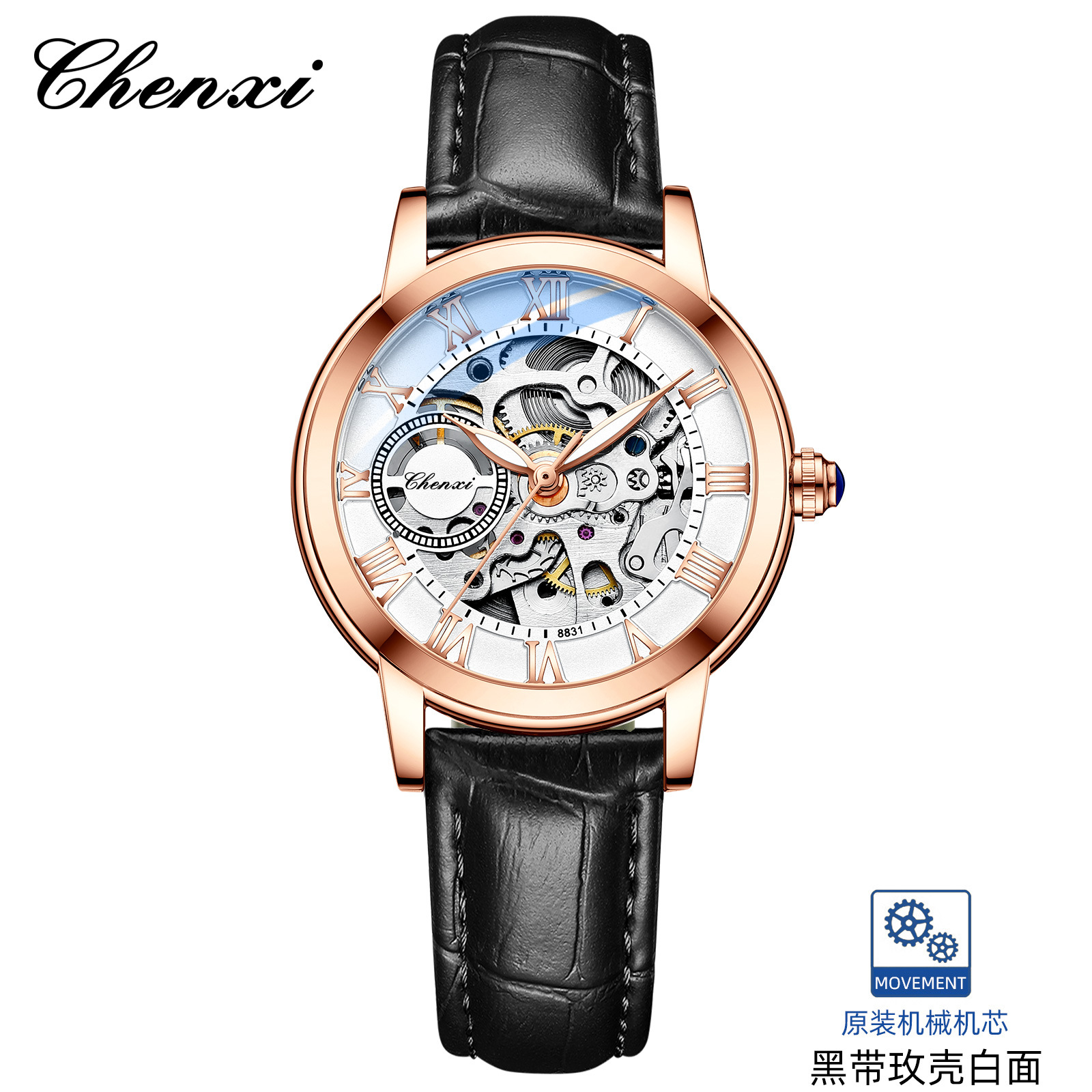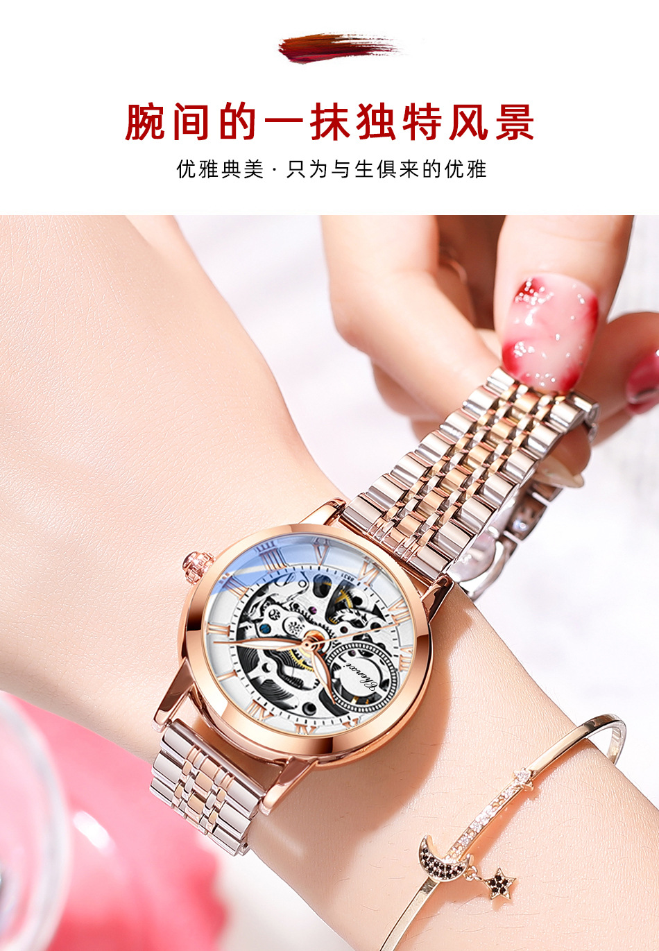 晨曦手表女士休闲夜光防水全自动镂空机械表