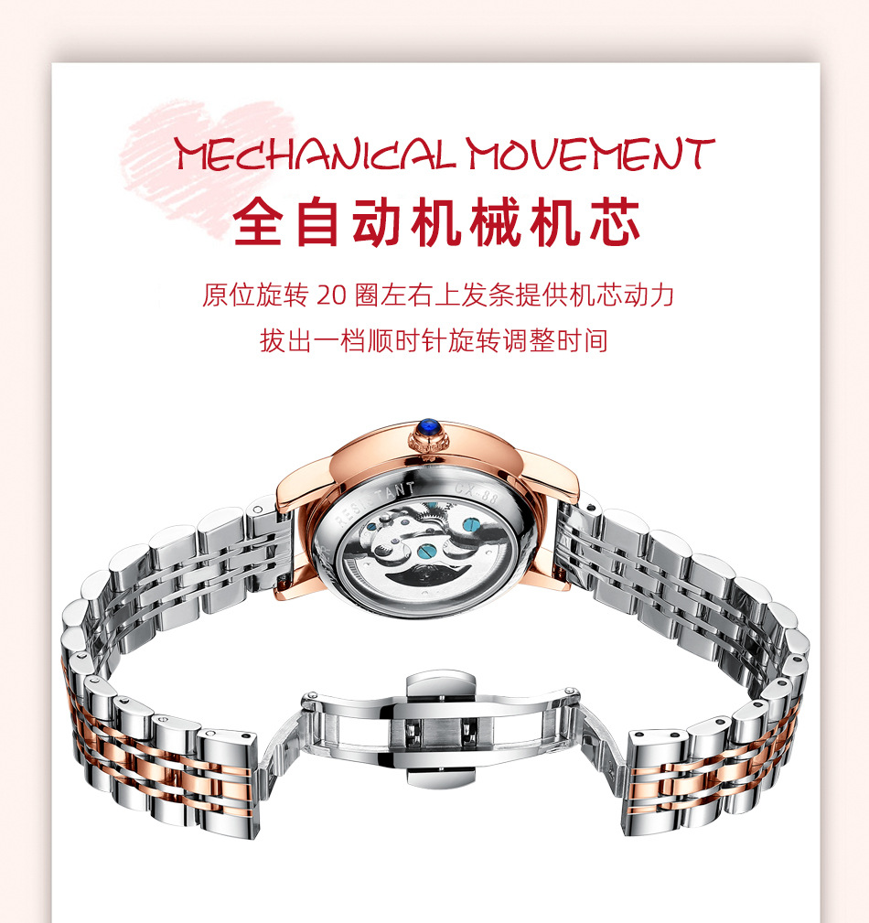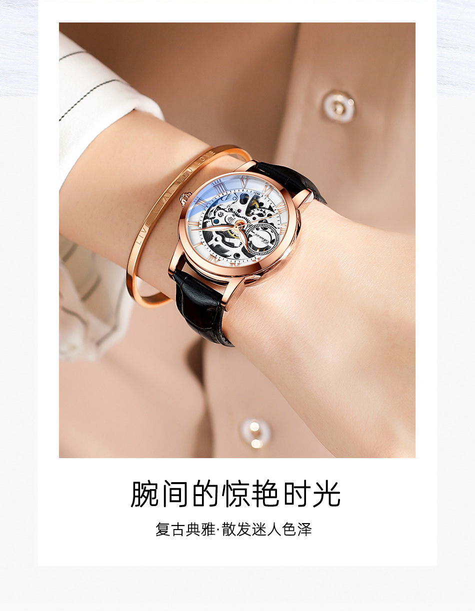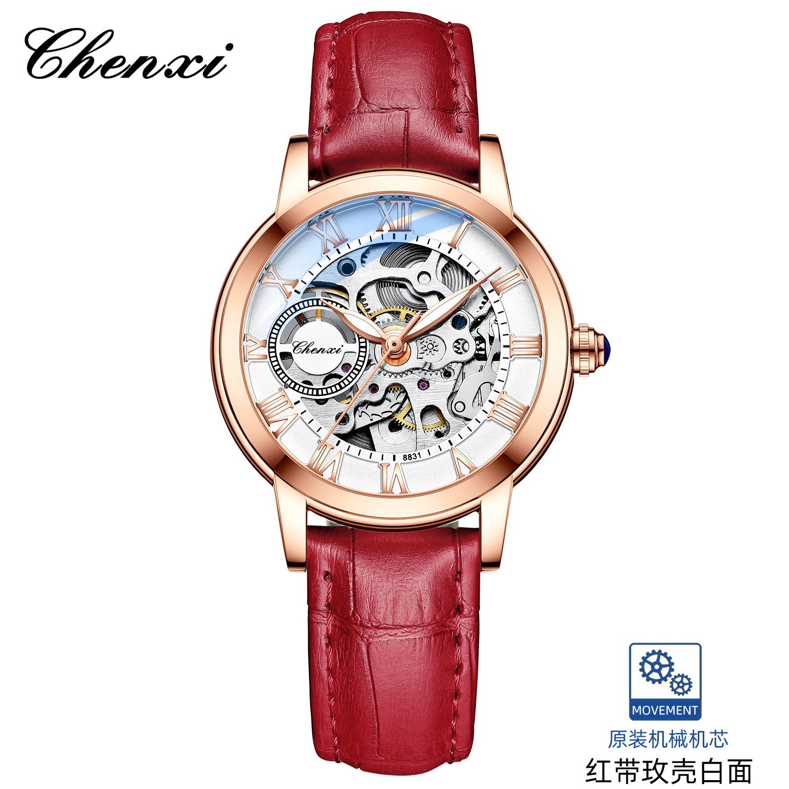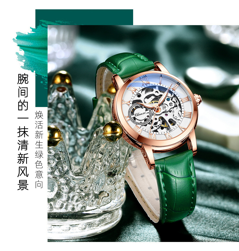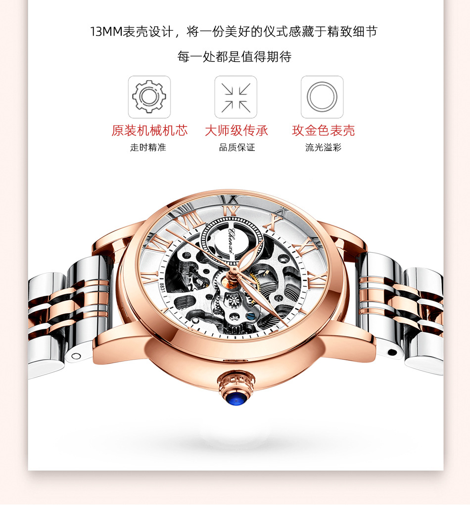 晨曦手表女士休闲夜光防水全自动镂空机械表