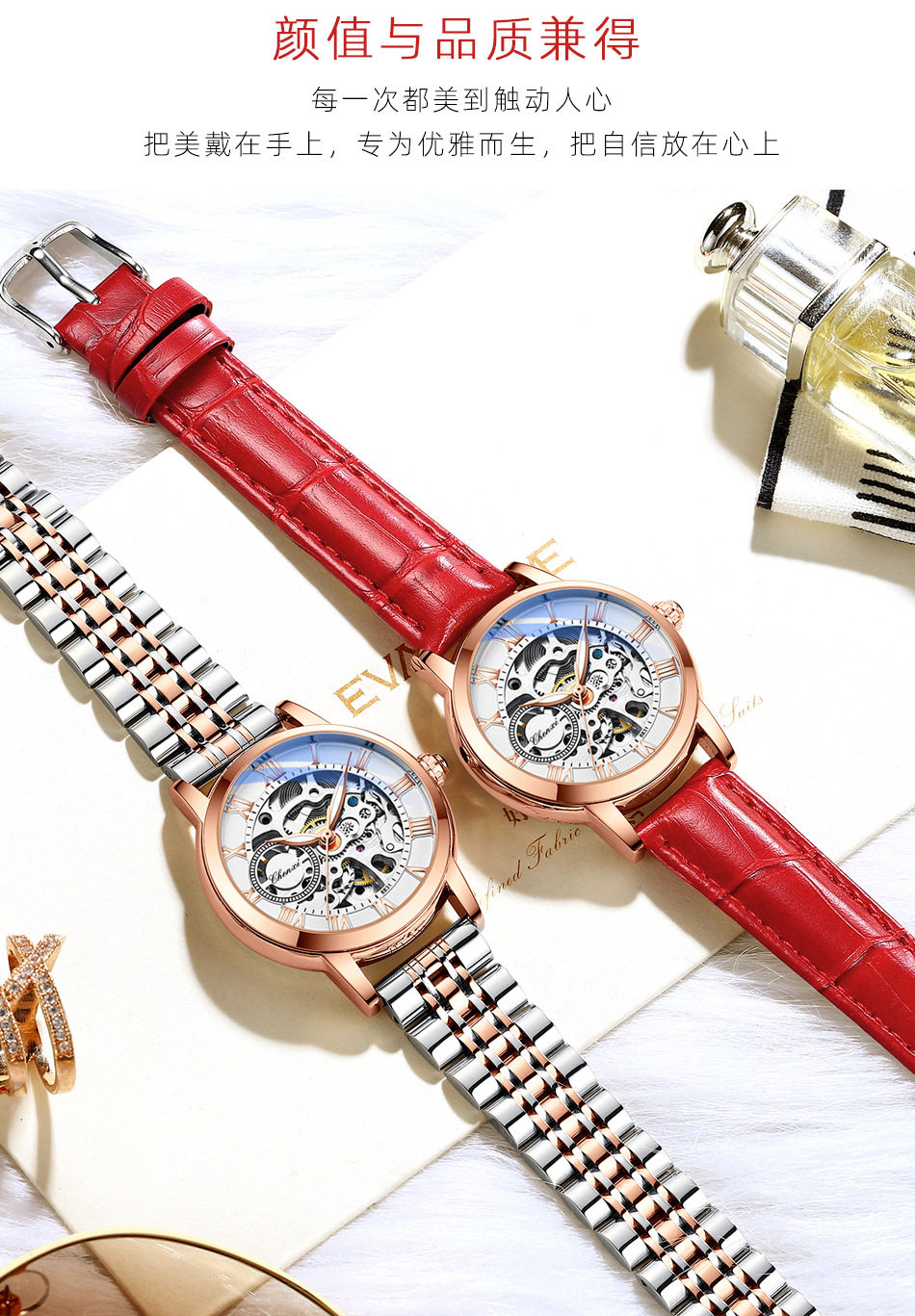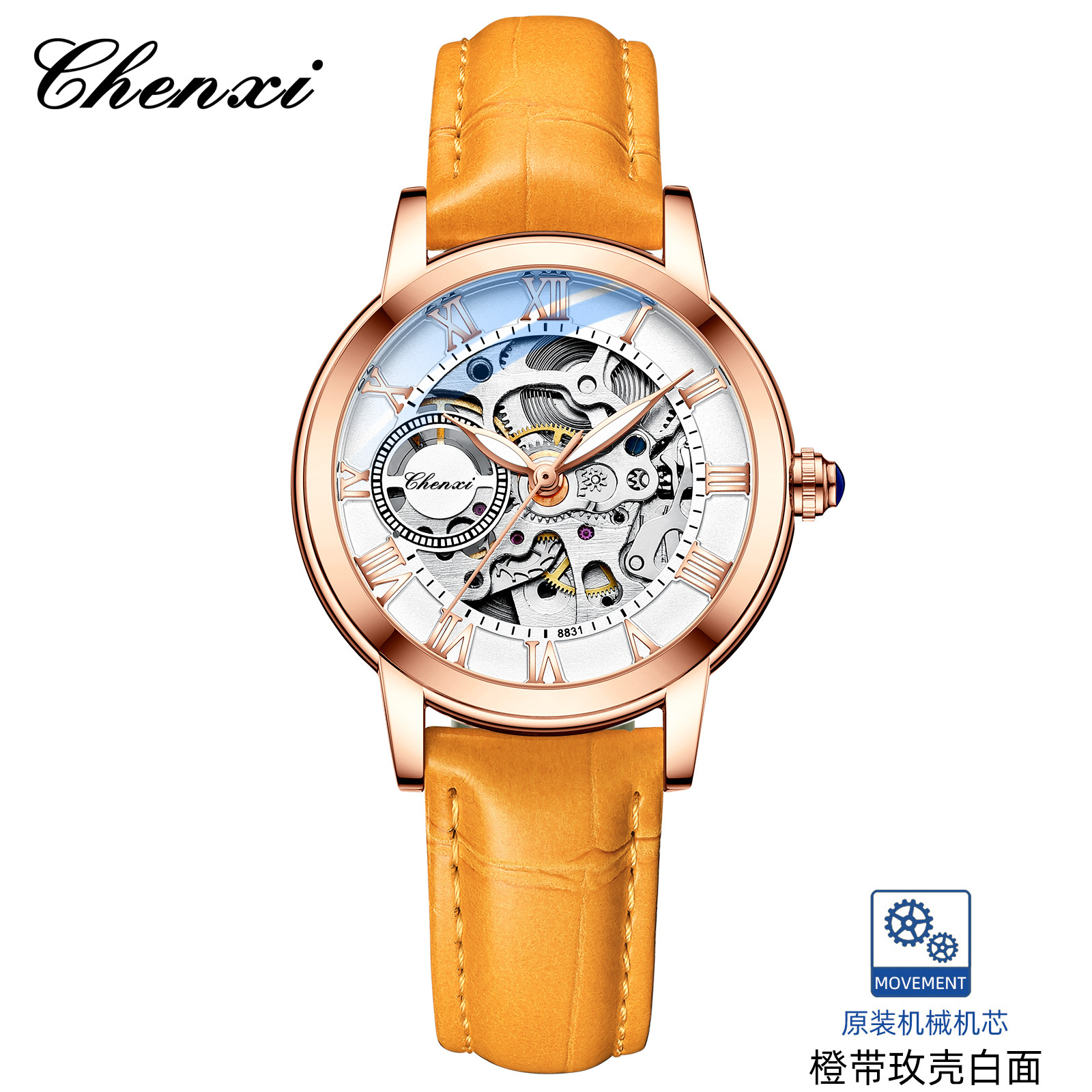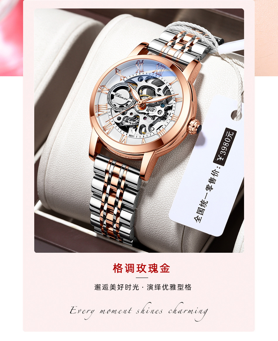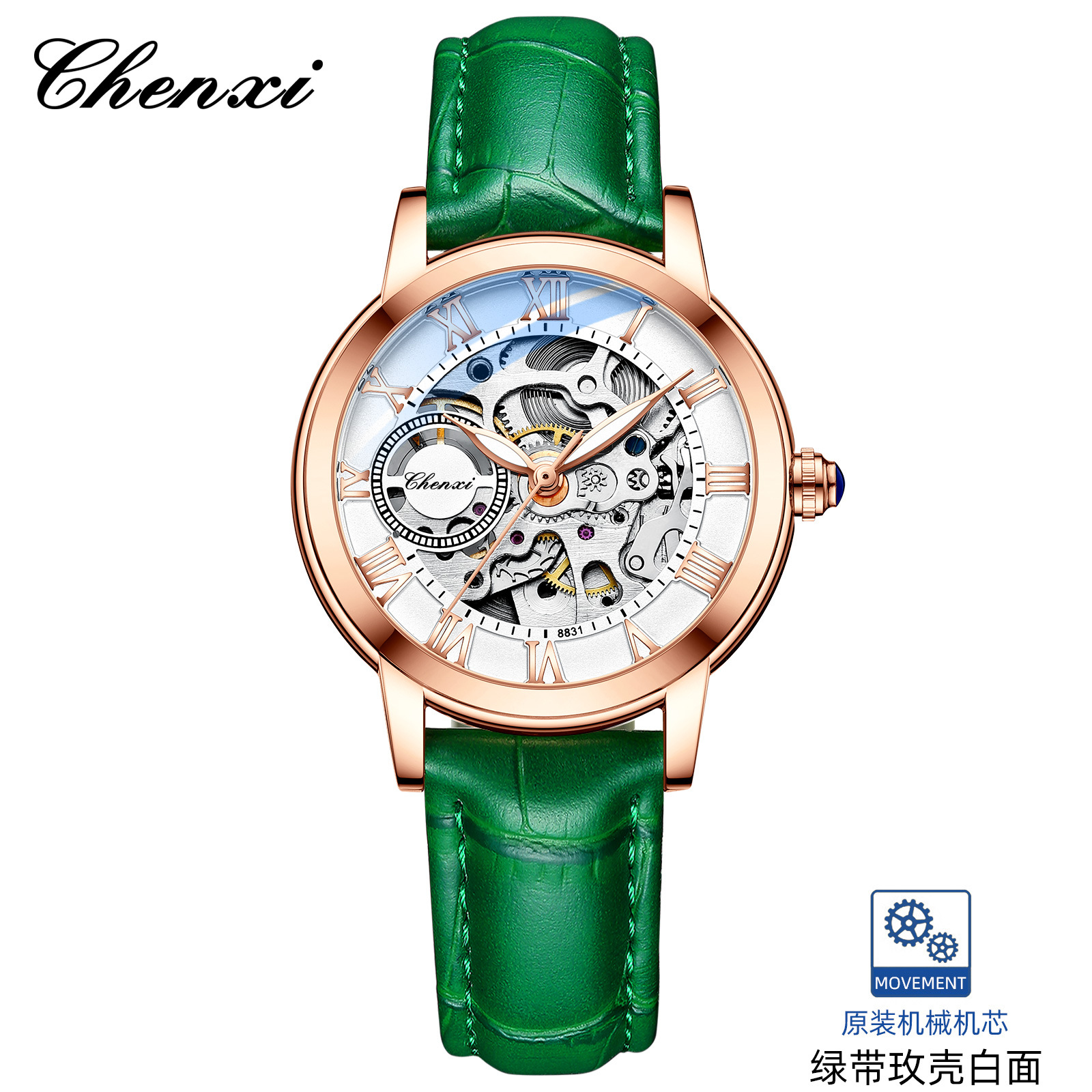 晨曦手表女士休闲夜光防水全自动镂空机械表