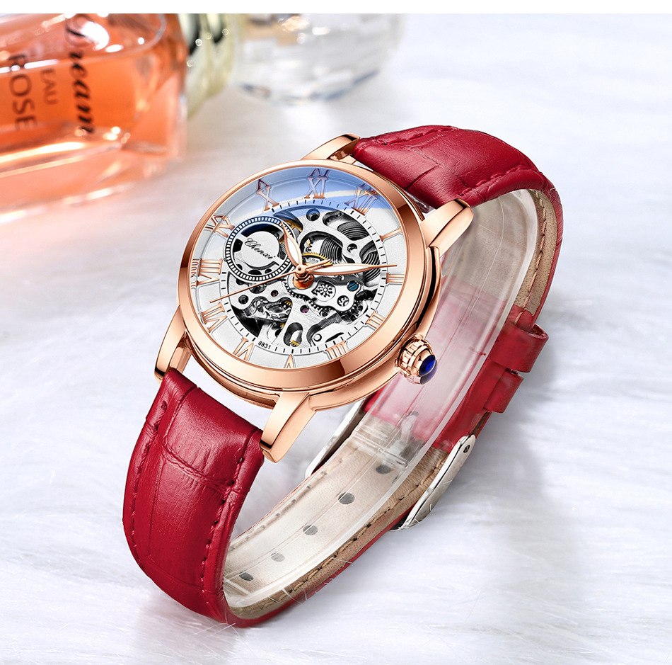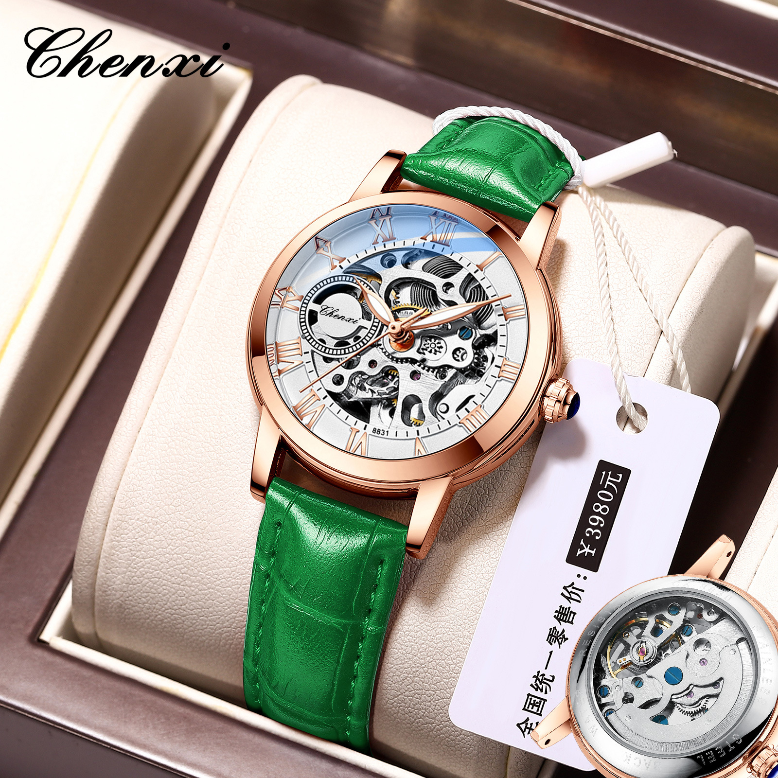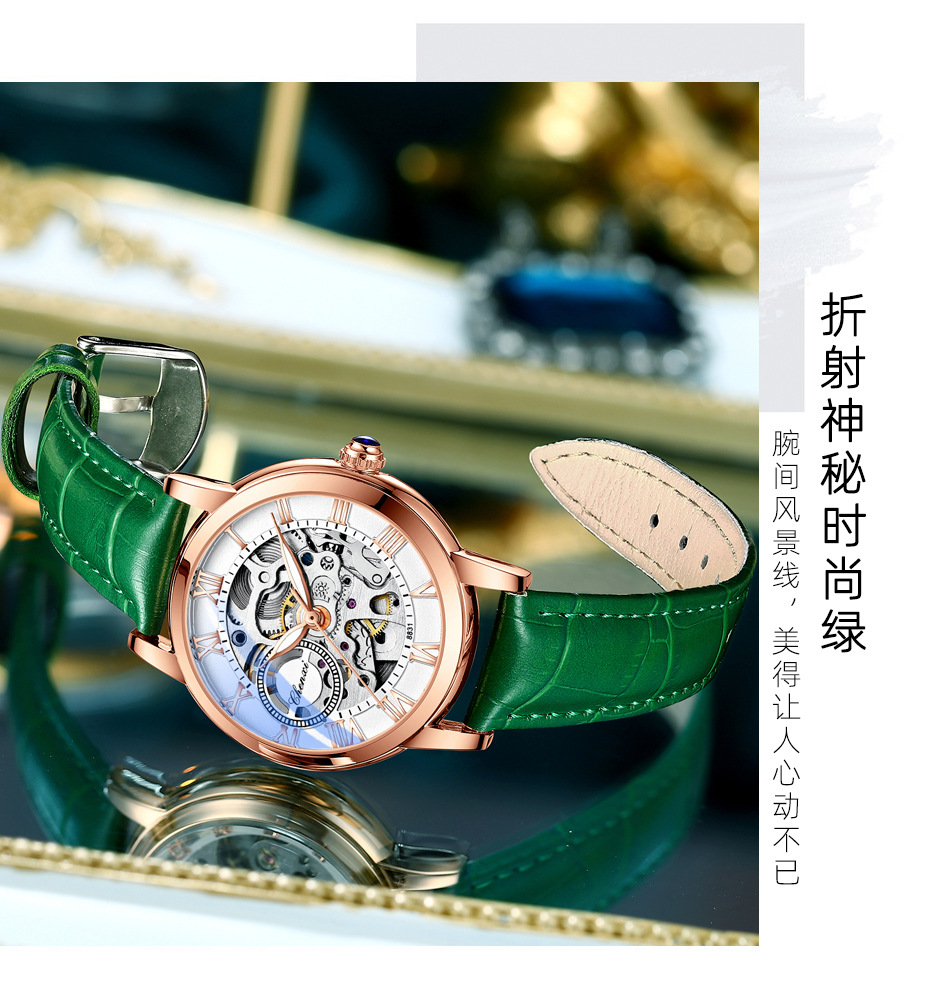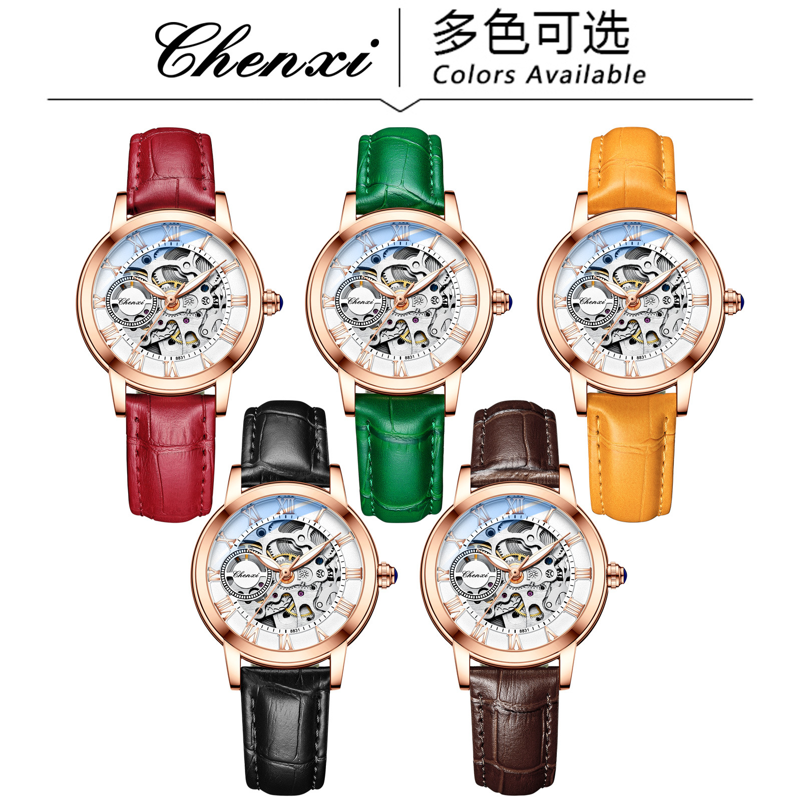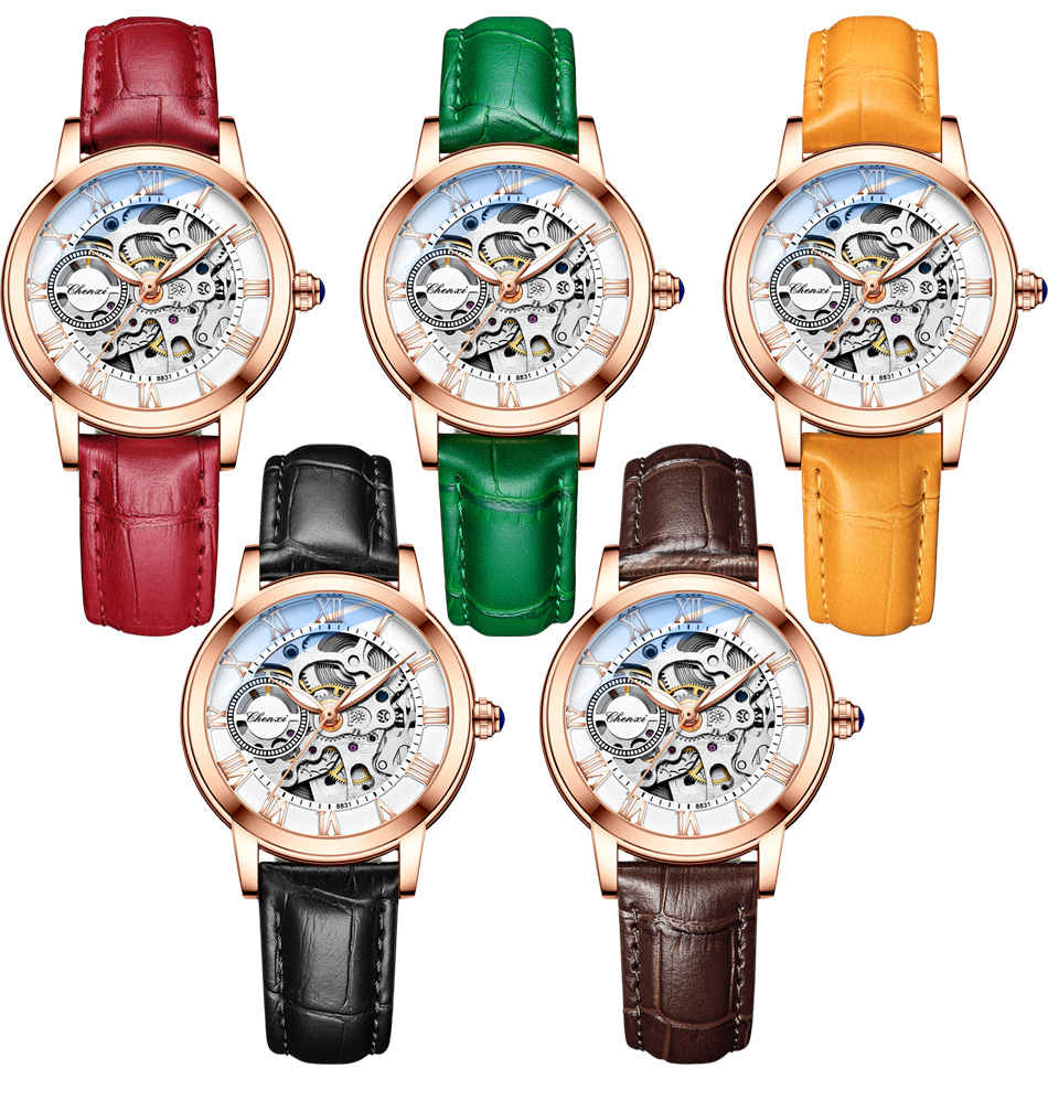 晨曦手表女士休闲夜光防水全自动镂空机械表