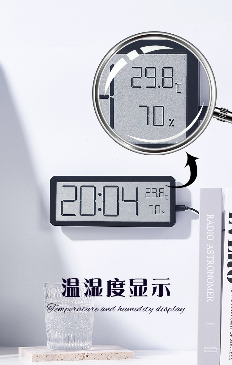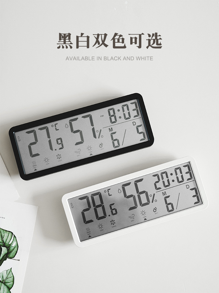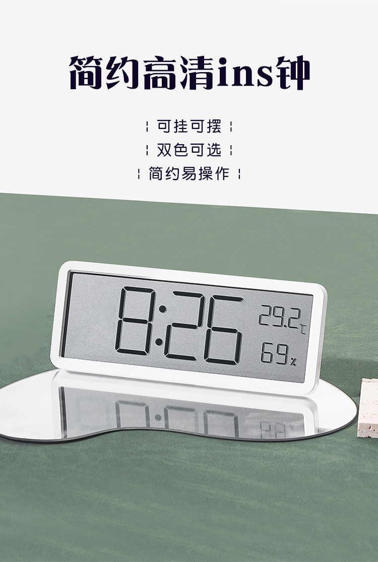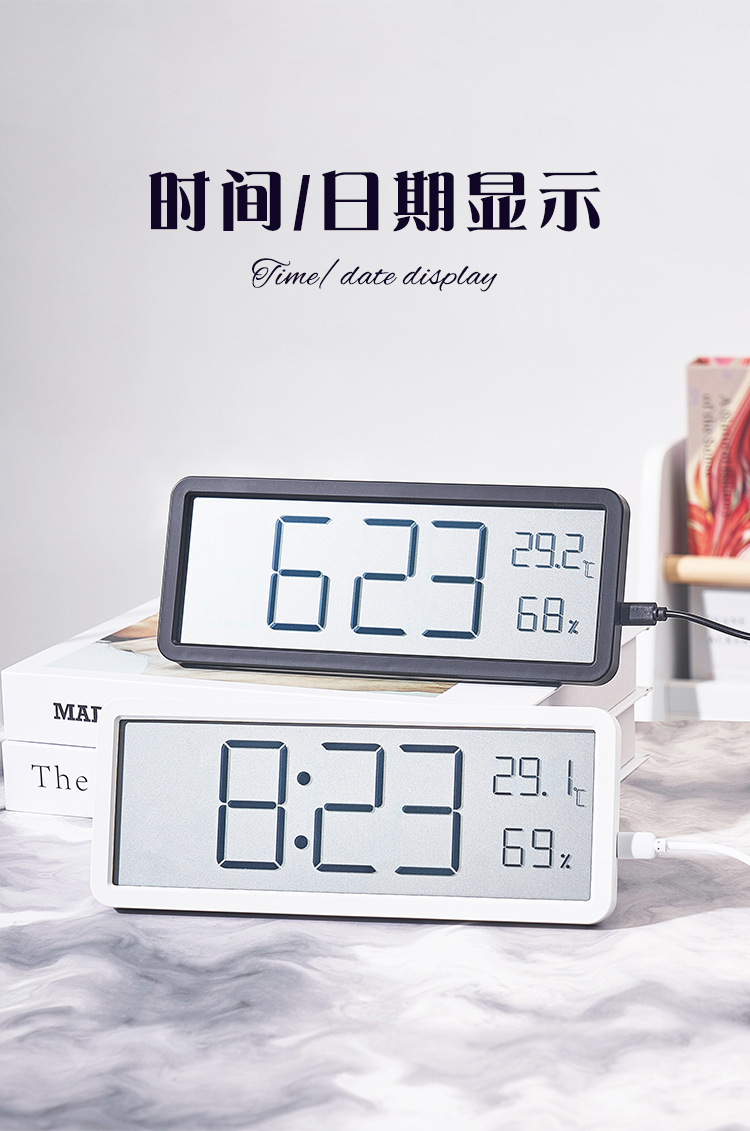 INS简约大屏时钟客厅挂钟温湿度钟表创意现代钟表可挂可立YD106