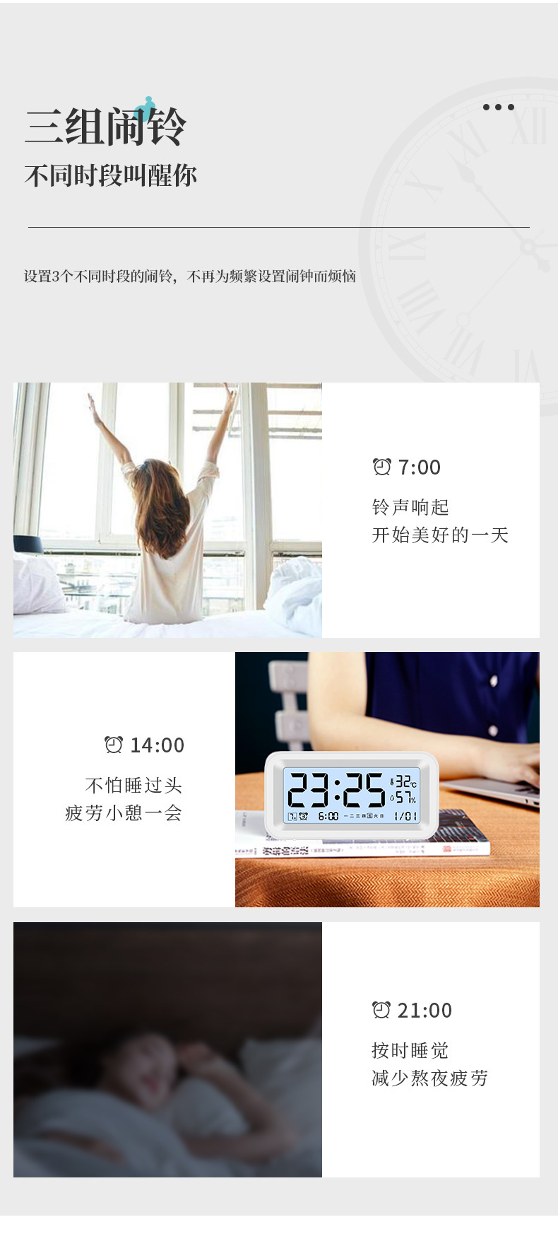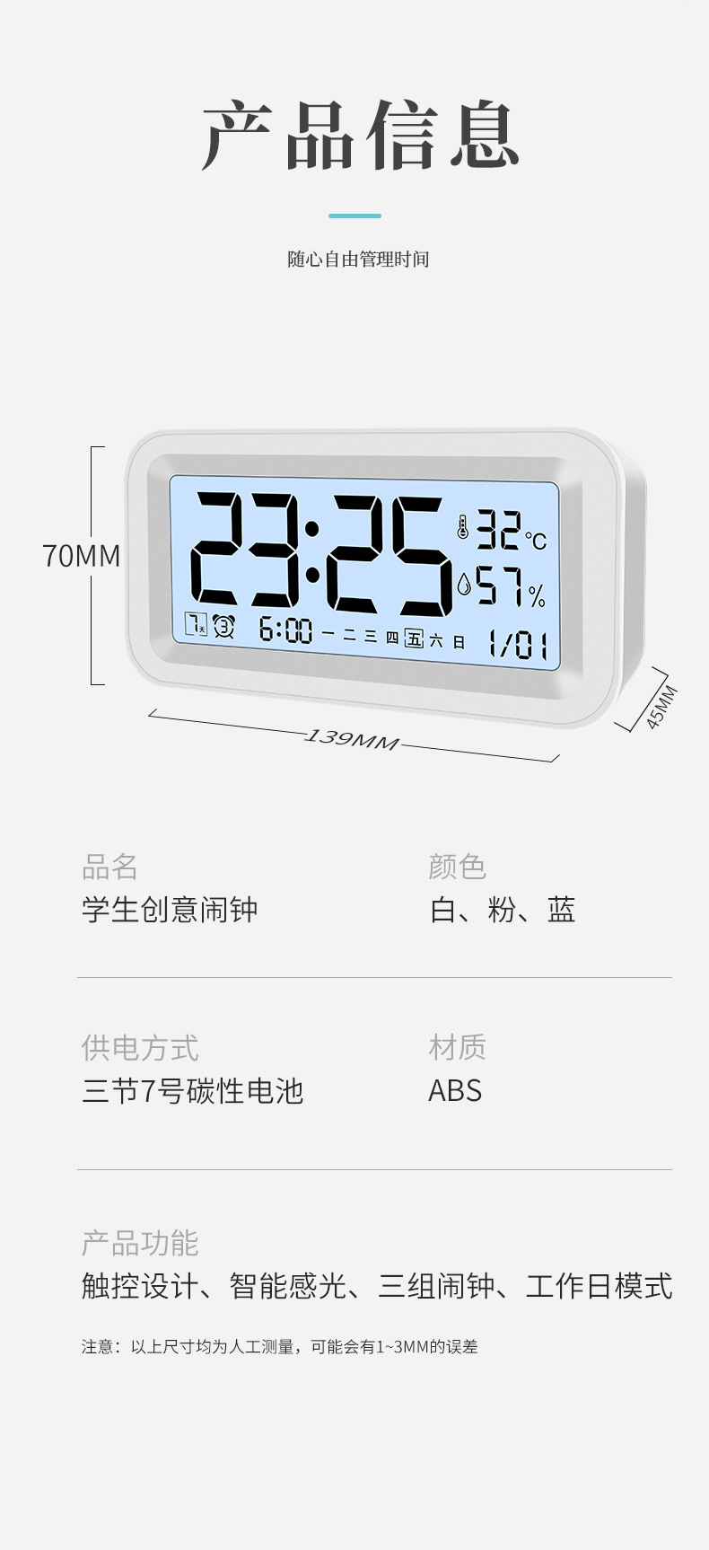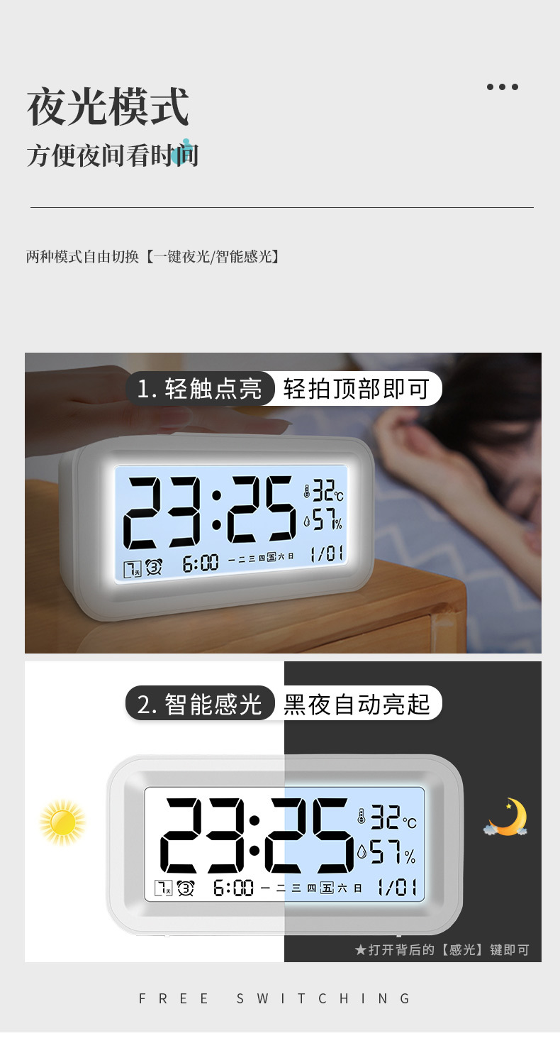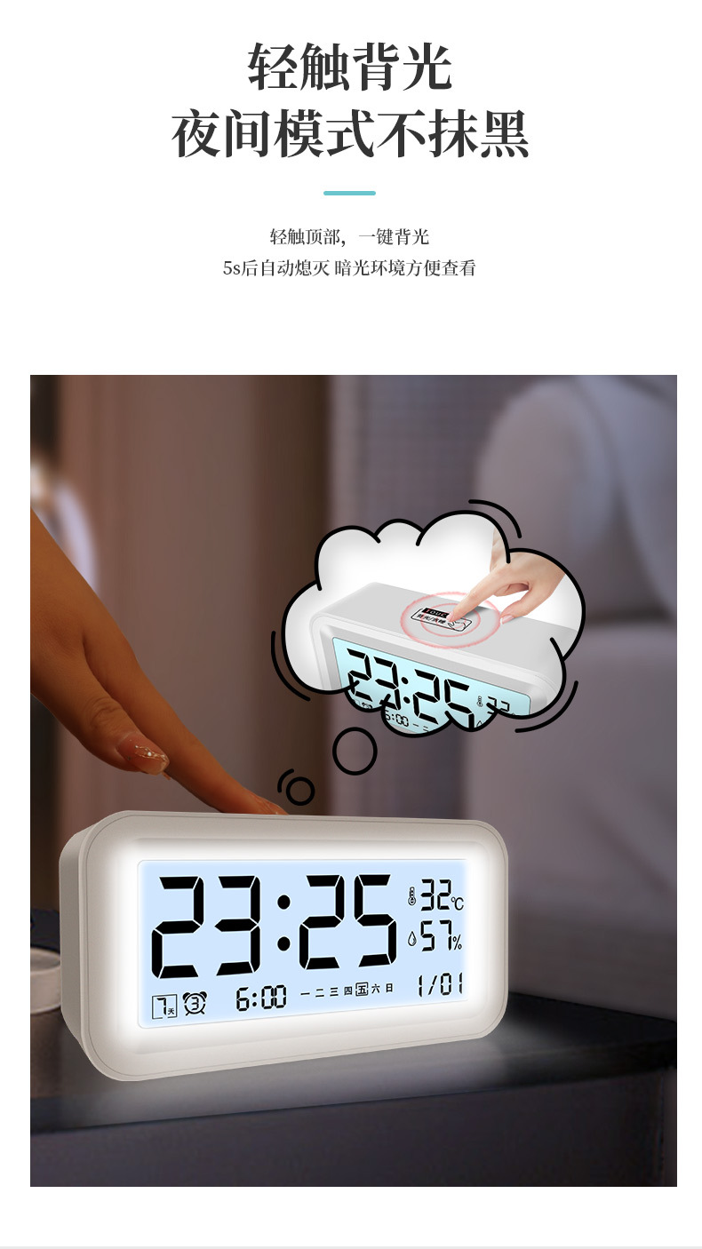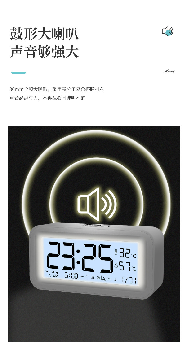 学生专用电子时钟智能钟表静音电池款卧室闹铃大音量带温湿度闹钟