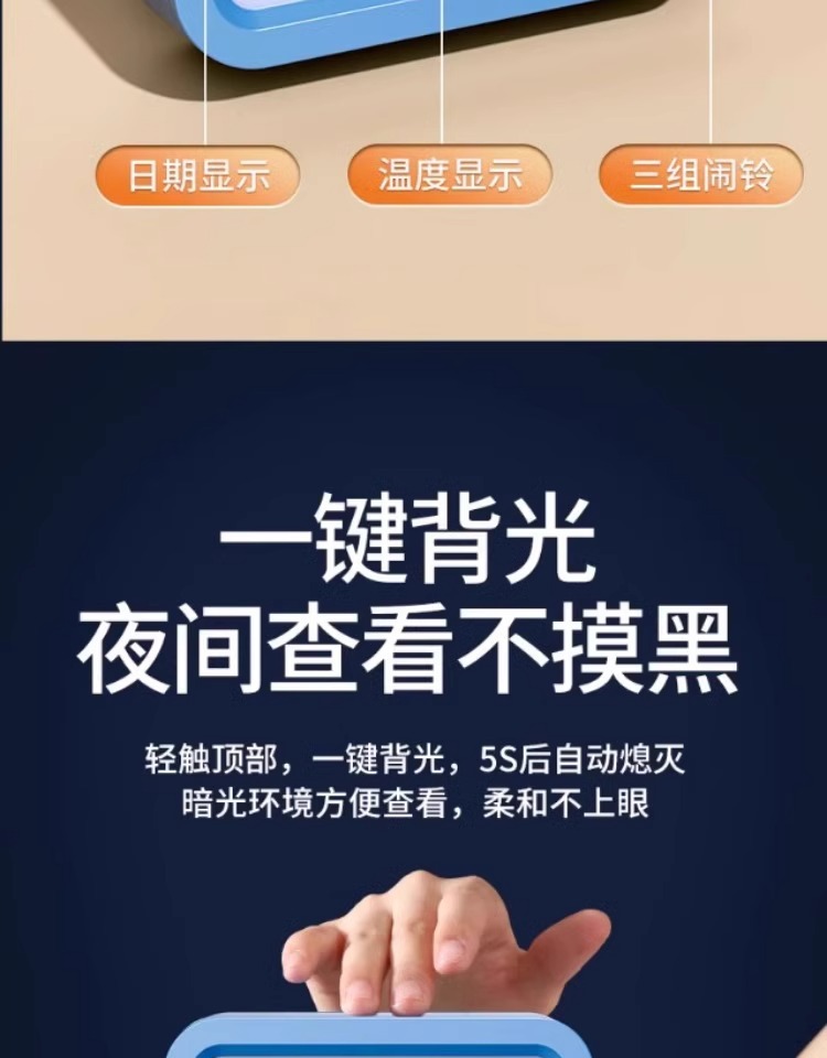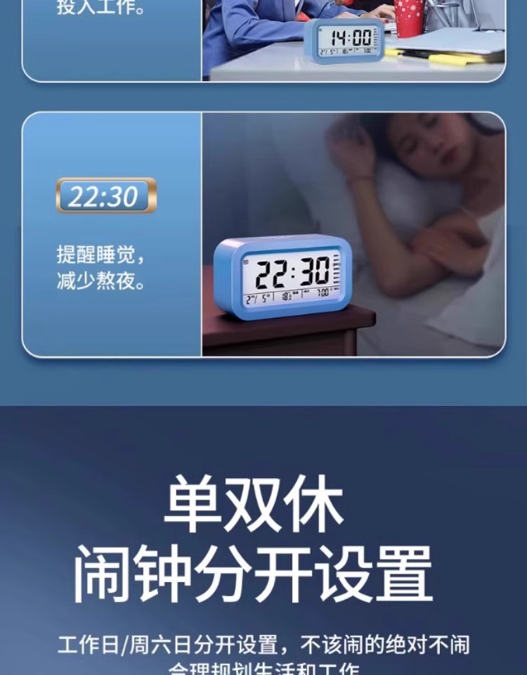 闹钟学生专用起床新款智能桌面电子时钟表强力叫醒闹铃
