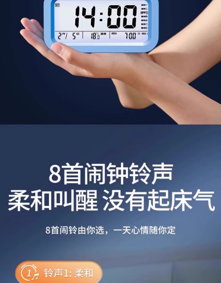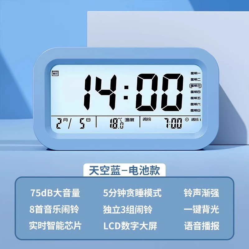 - 天空蓝【智能语音播报★夜光显示】电池款超长待机-送电池
