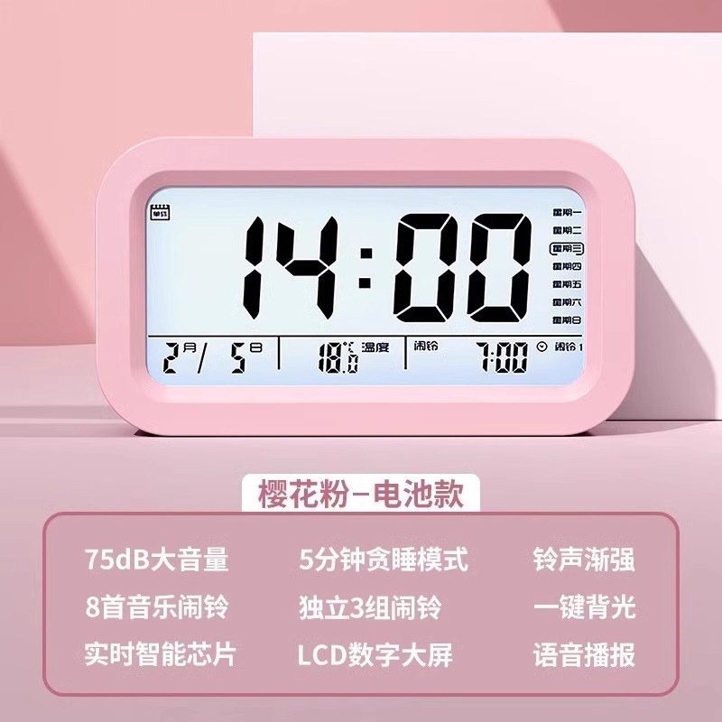 - 樱花粉【智能语音播报★夜光显示】电池款超长待机-送电池