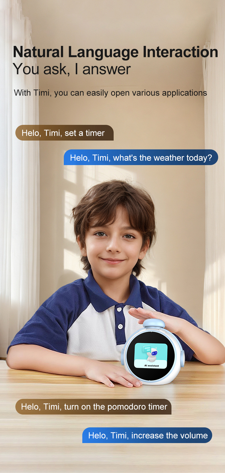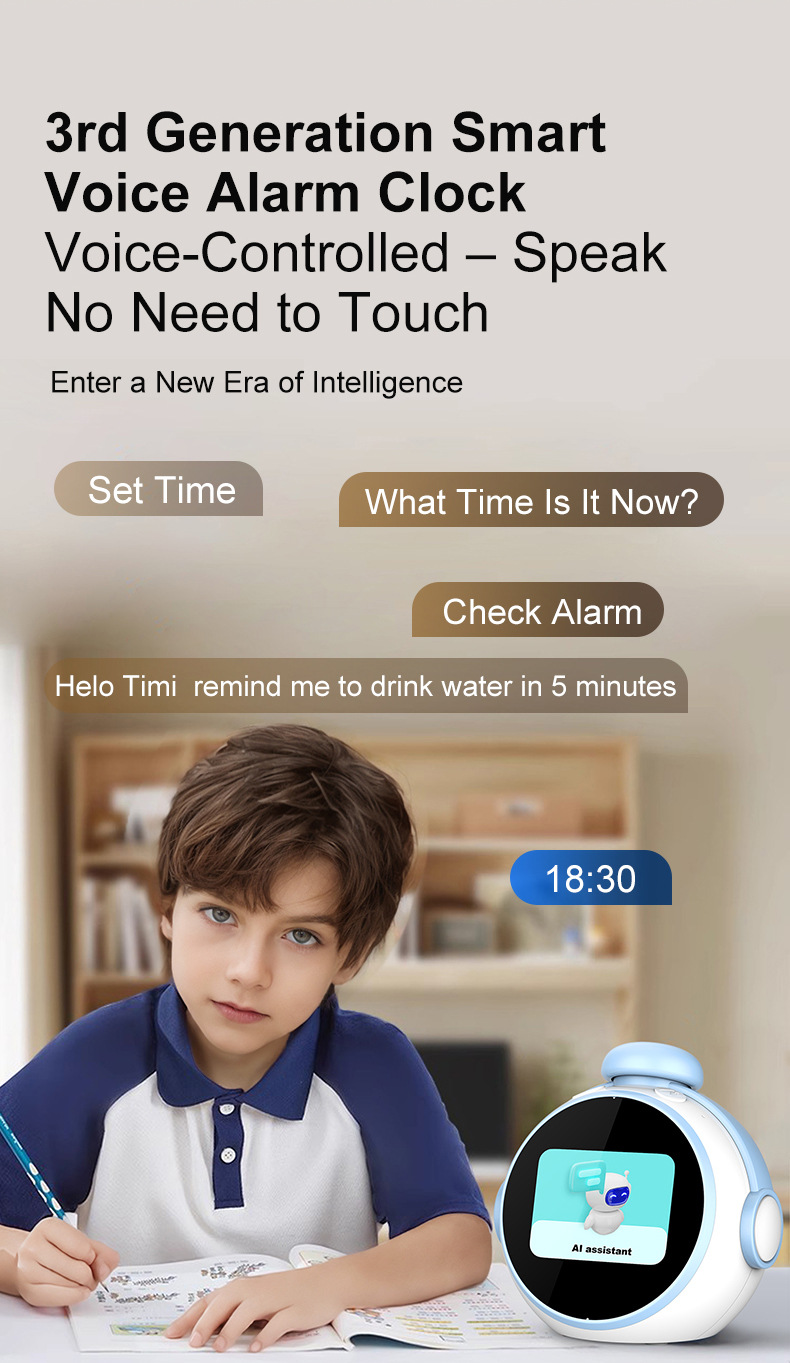 智能学生闹钟学习专用多功能带语音控制闹钟AI时间管理器