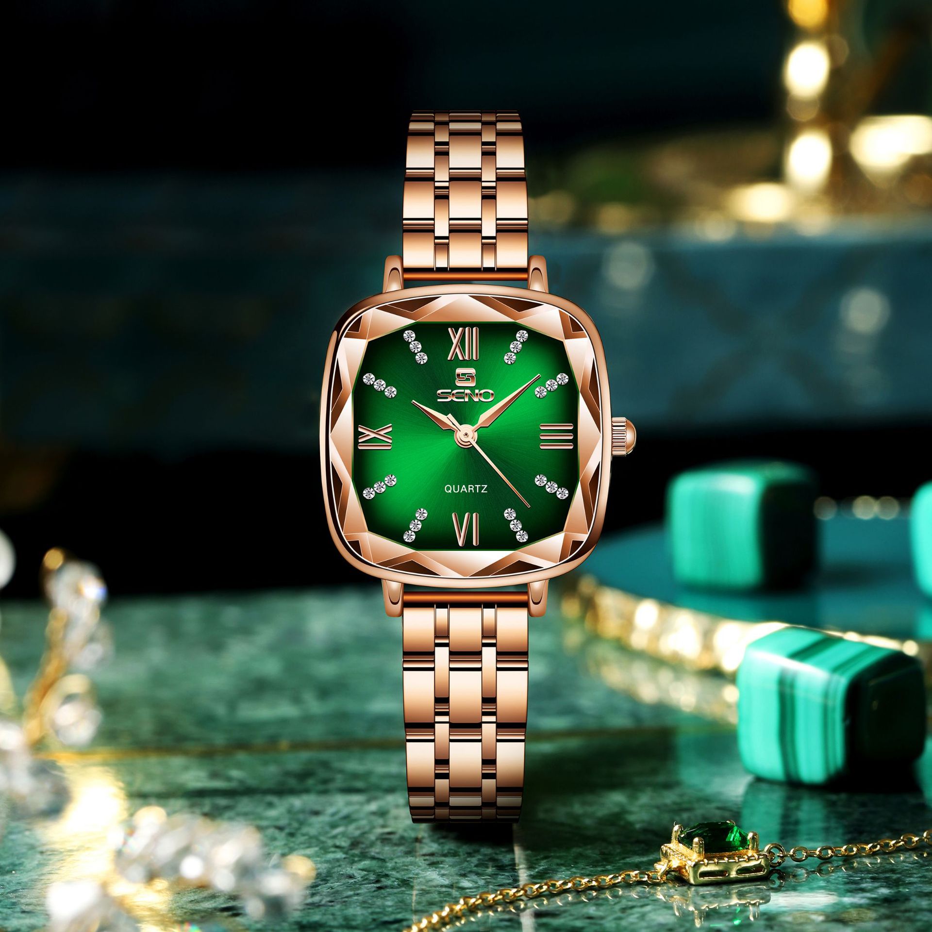 SENO新款钢带石英学生表手表女方形女士手表小表盘表