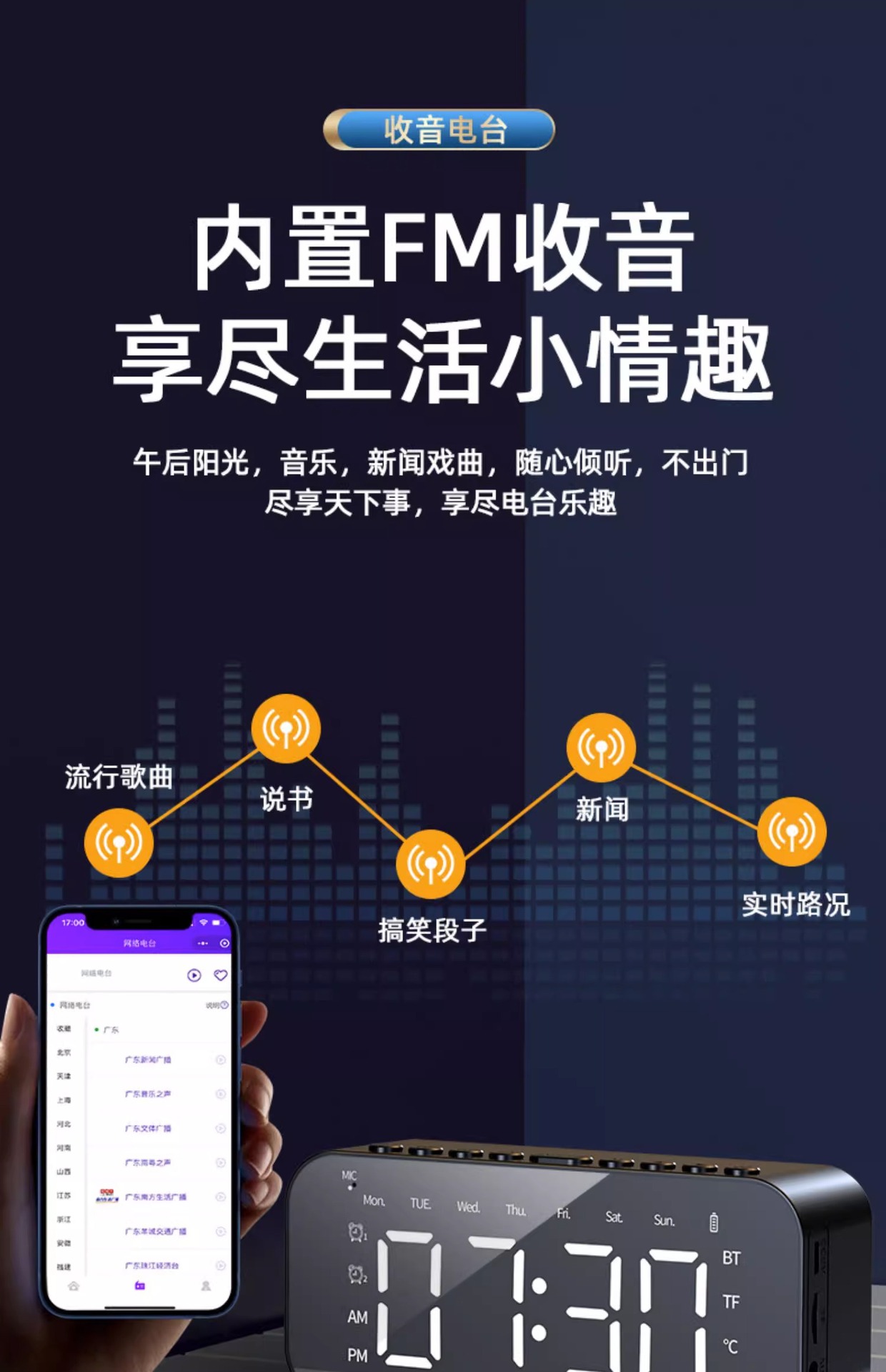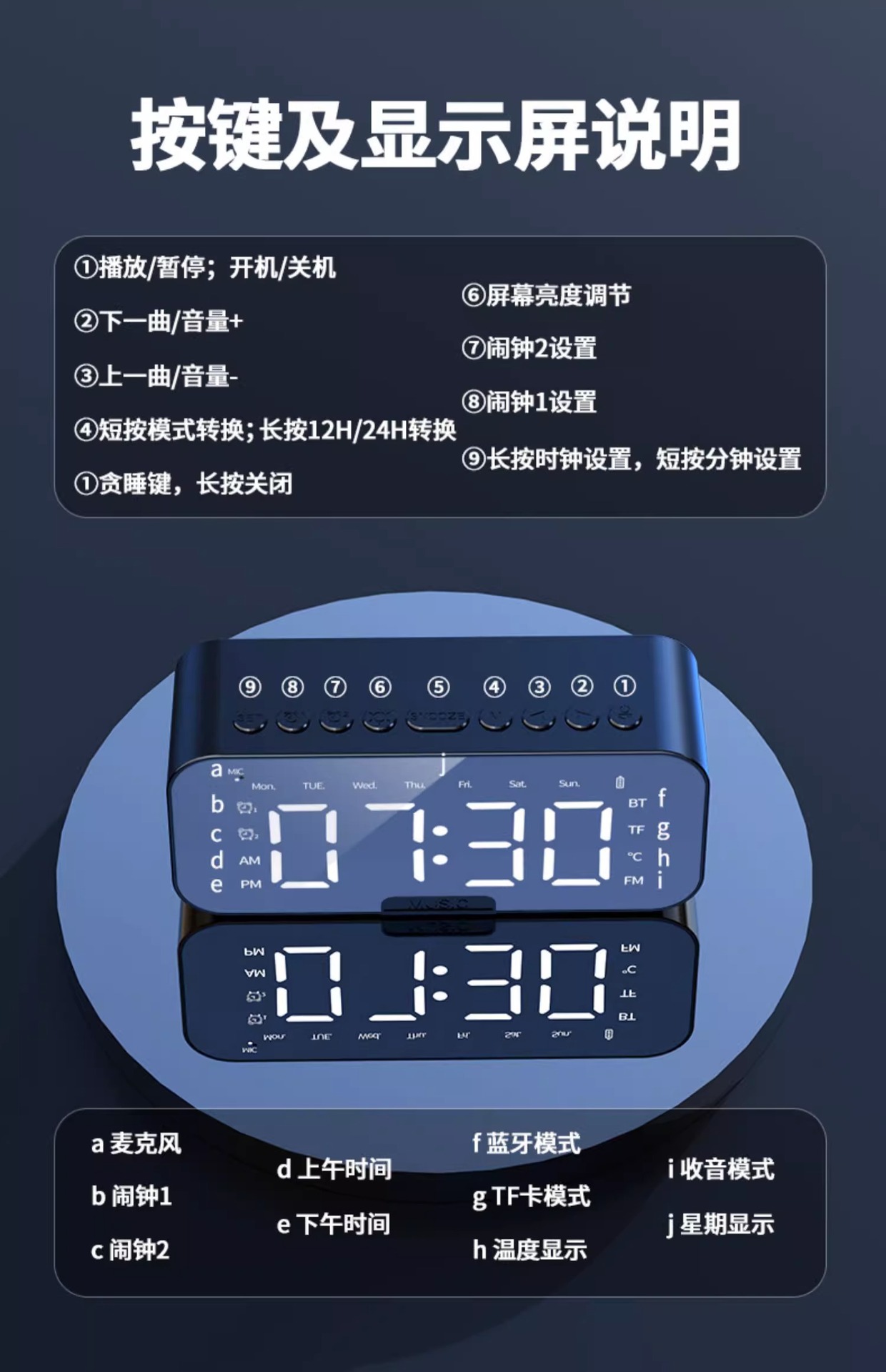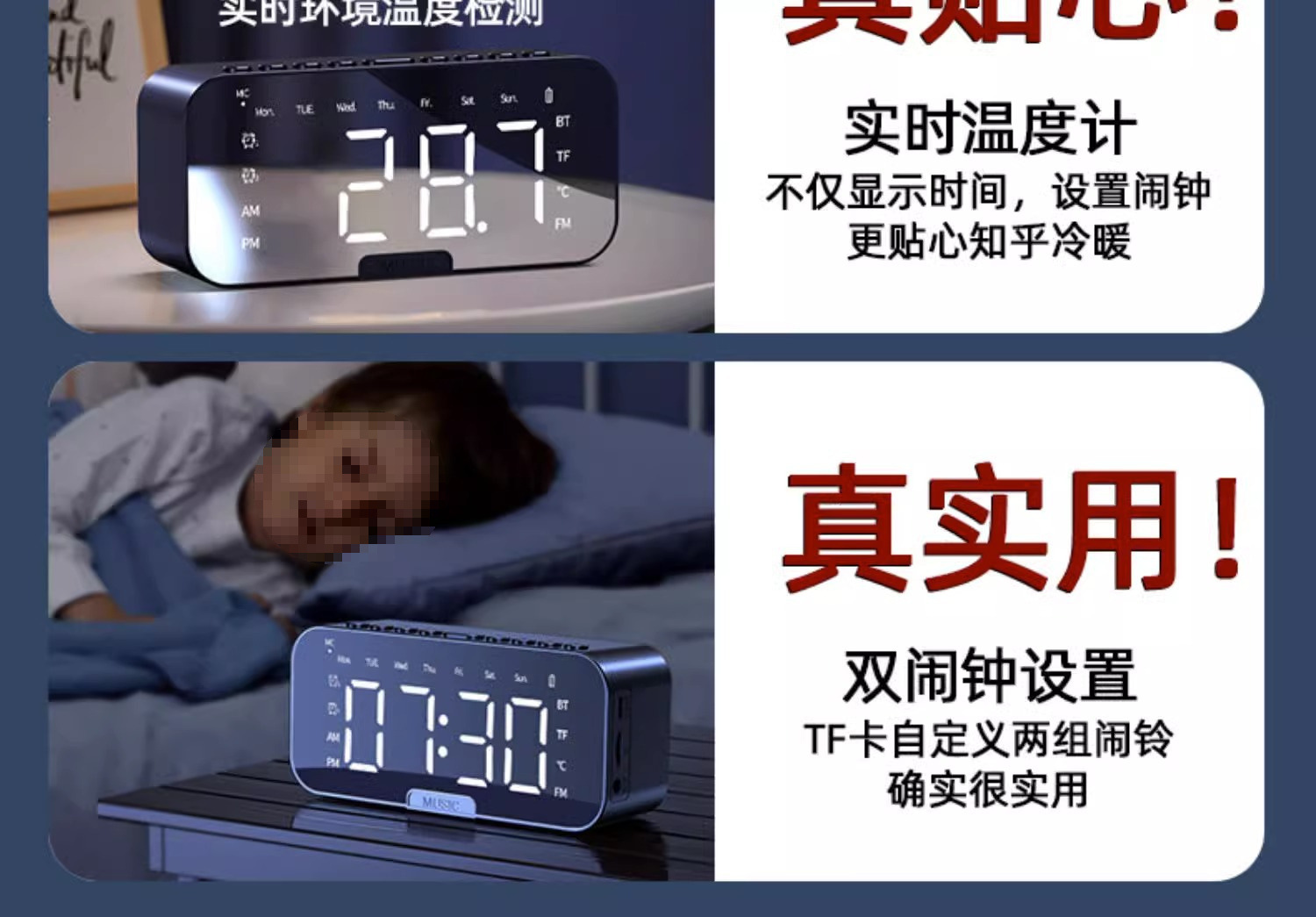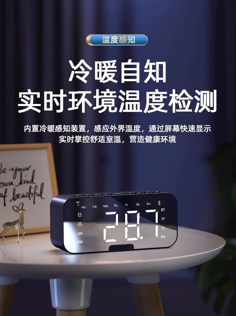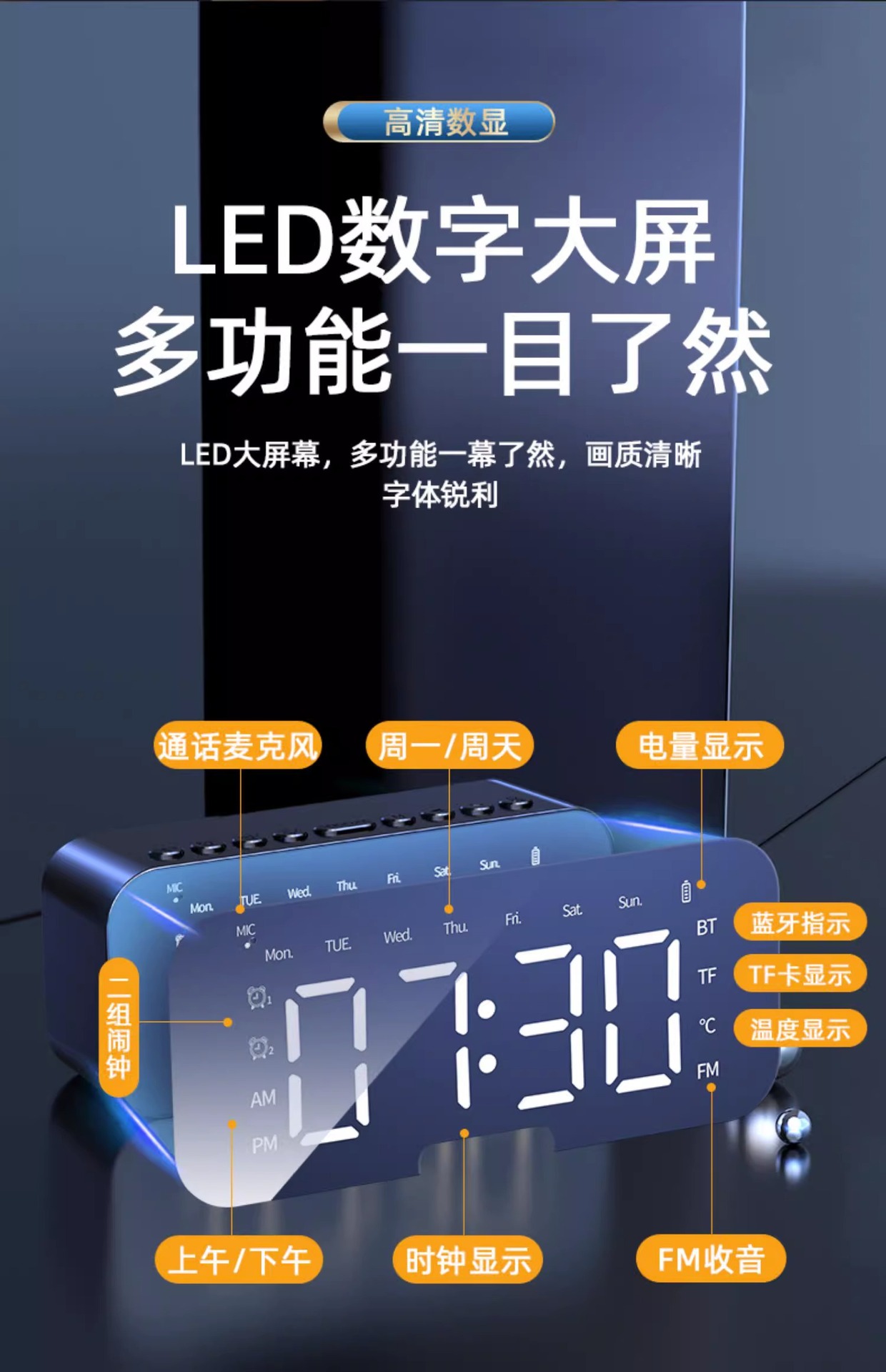 - 黑色【可小程序管理+星期+贪睡+蓝牙+三挡亮度调节】