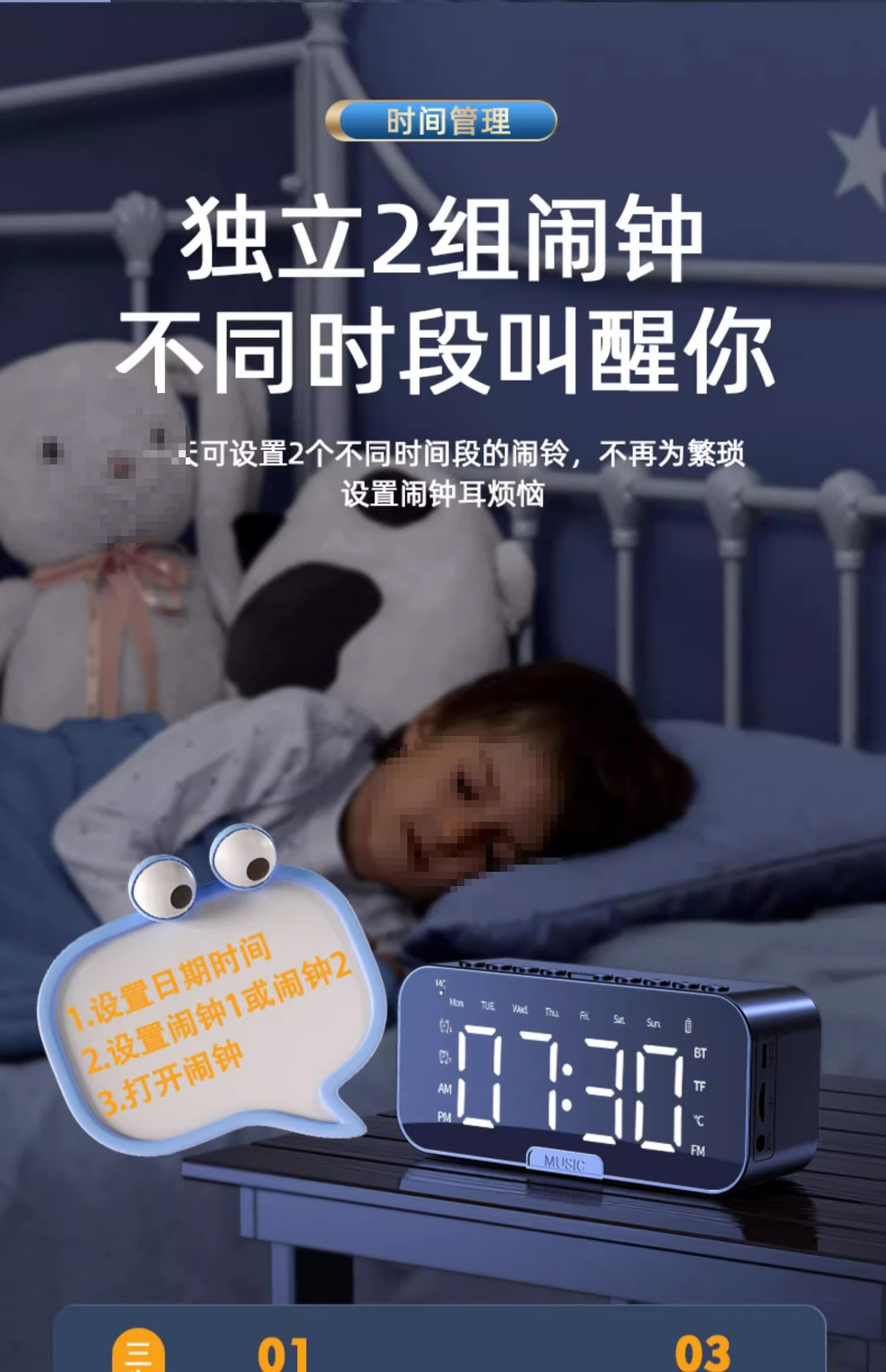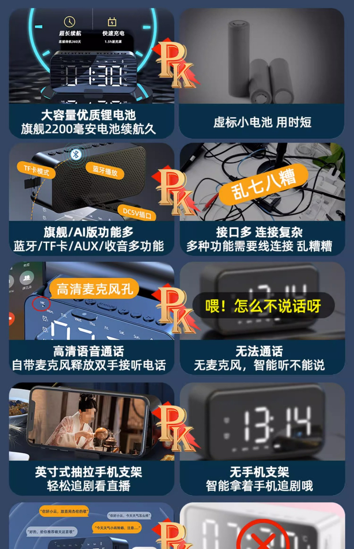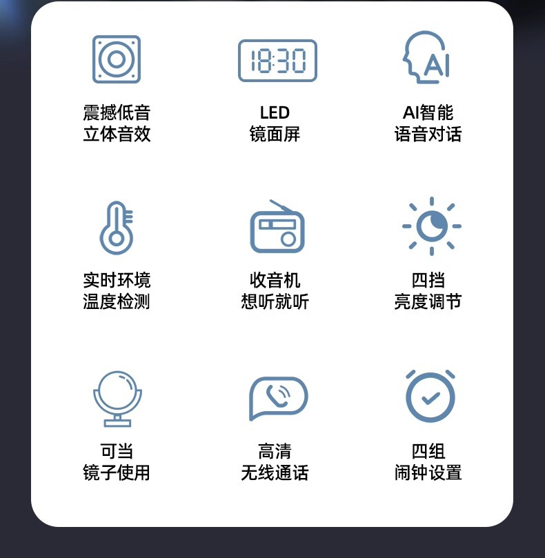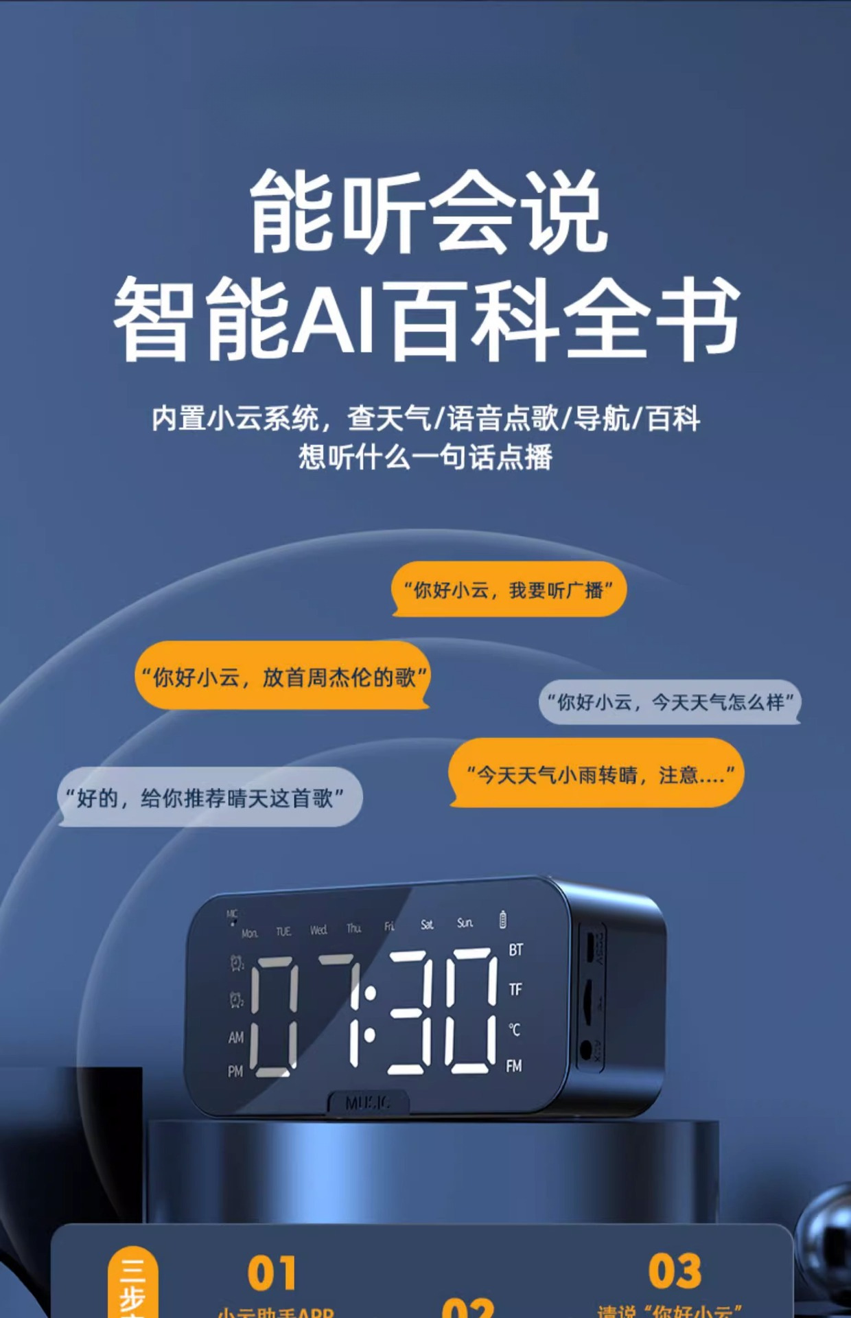 - AI版白【AI智能对话+星期+贪睡+蓝牙+三挡亮度调节】