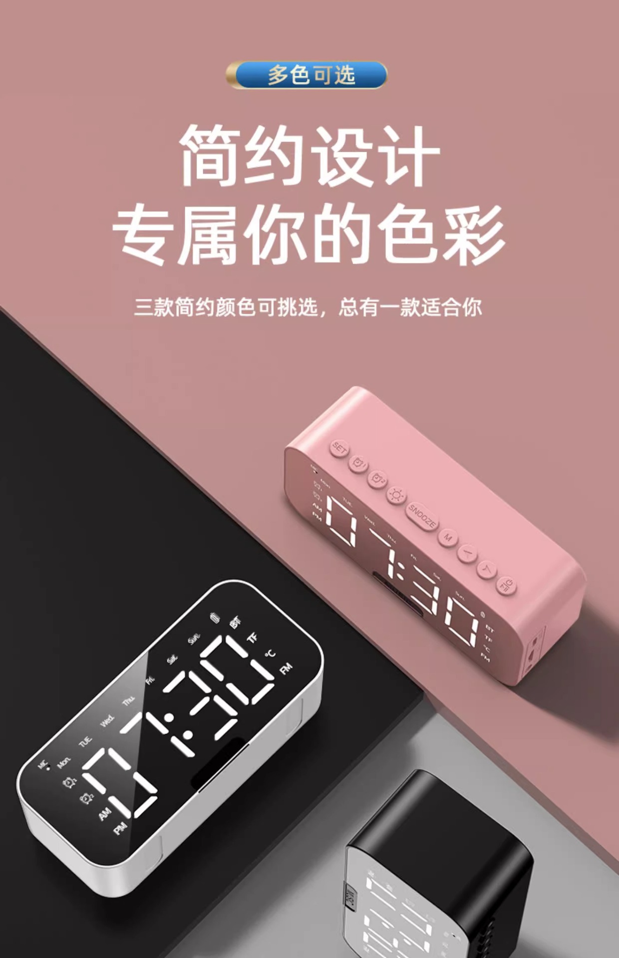 - 粉色【可小程序管理+星期+贪睡+蓝牙+三挡亮度调节】