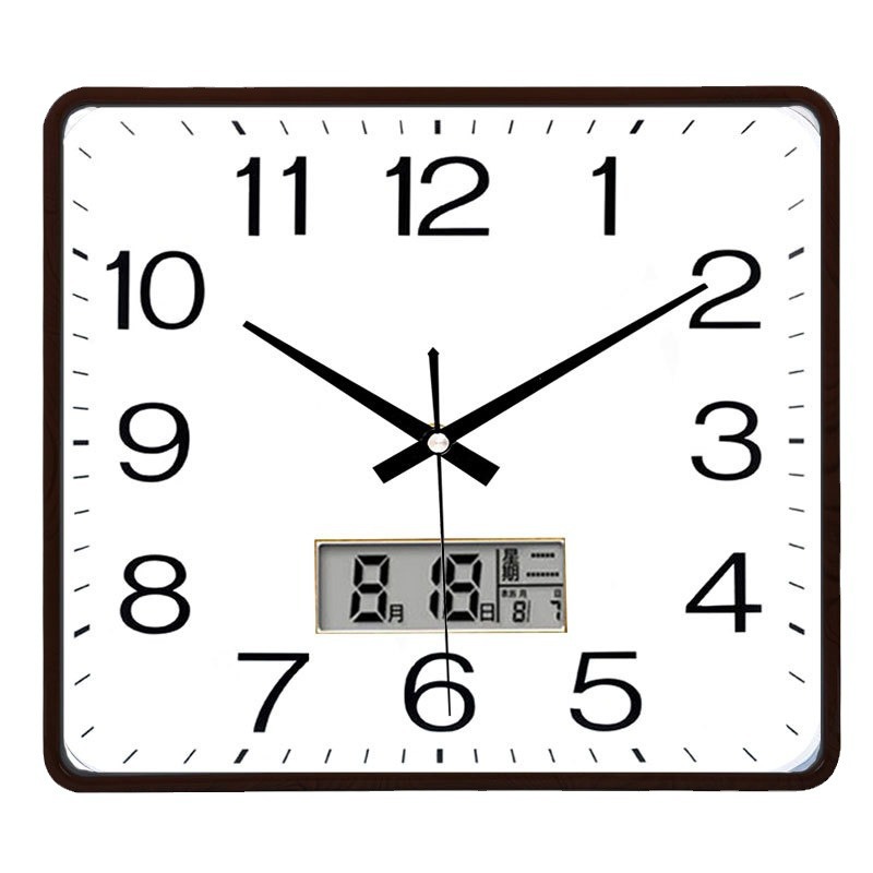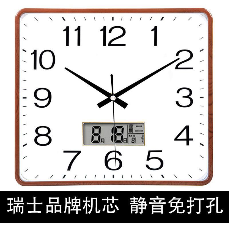 家用方形挂钟客厅钟表现代静音挂墙简约时尚电子日历时钟石英钟表