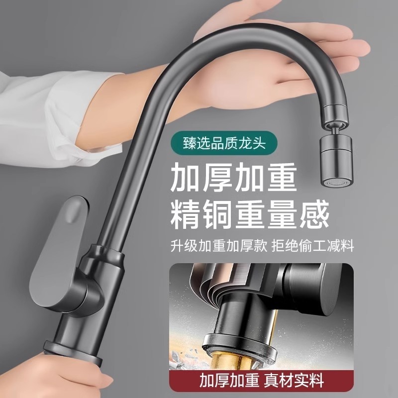 全铜厨房水龙头防溅水万向旋转水槽洗菜盆冷热二合一两用龙头