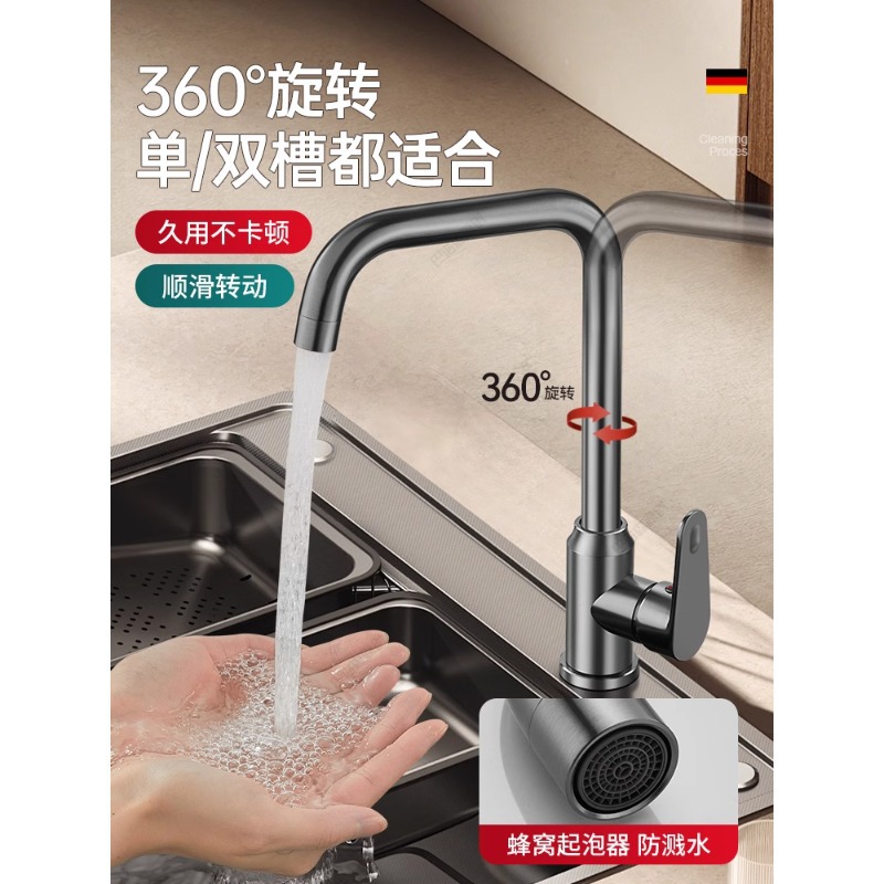 - 304不锈钢【银色三档◆大弯款】冷热双控◆万向旋转◆大角度用水
