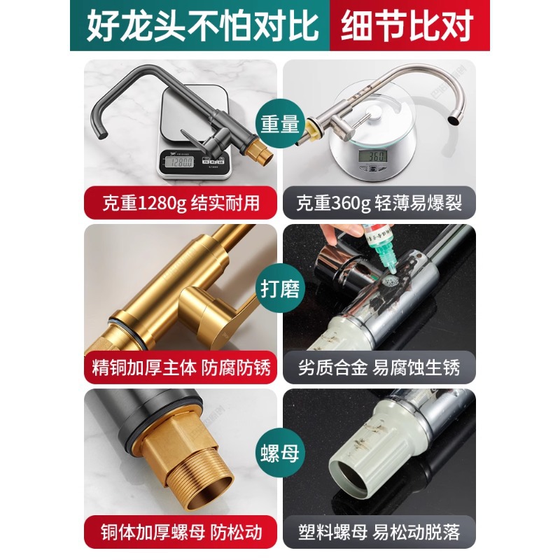 全铜厨房水龙头家用洗菜盆水槽洗衣池加高七字万向旋转冷热两用