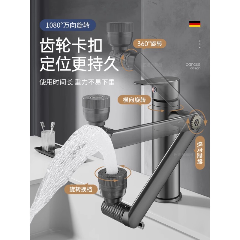 全铜洗脸盆水龙头家用卫生间冷热万向机械臂浴室台洗脸池面盆龙头