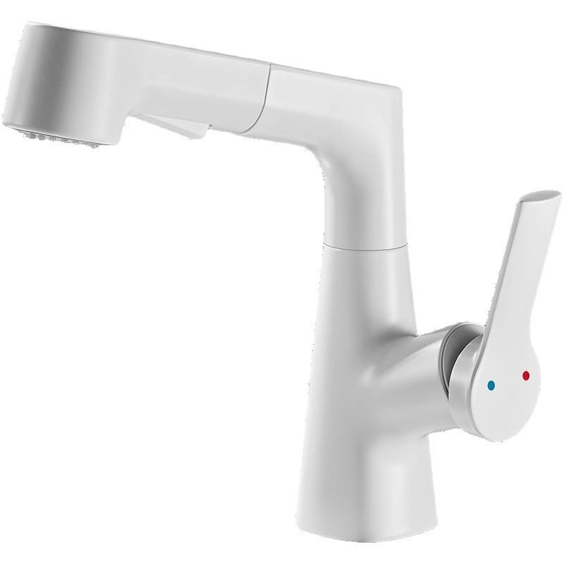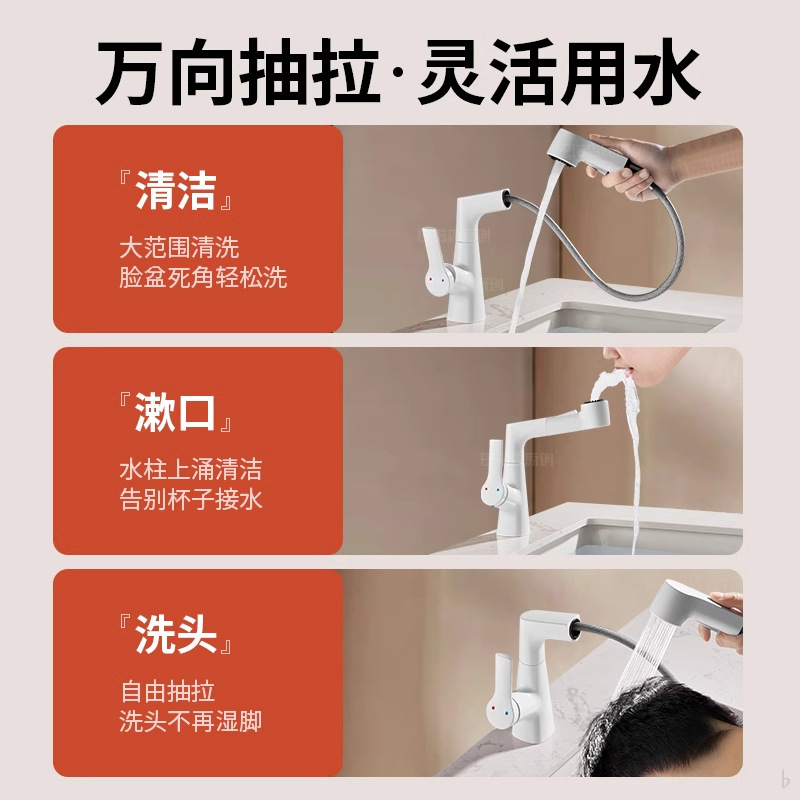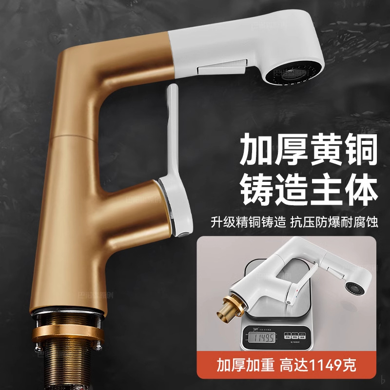 全铜白色升降洗手盆水龙头家用洗脸盆抽拉式卫生间面盆冷热台盆