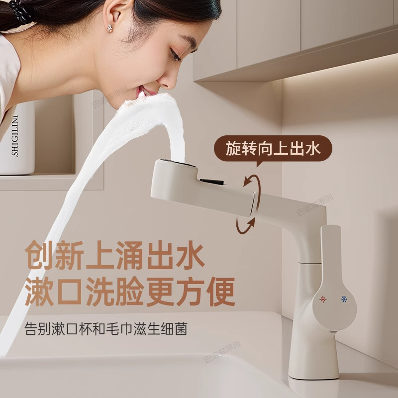 奶油风白色卫生间洗脸盆水龙头冷热抽拉式浴室柜洗手台洗漱盆家用