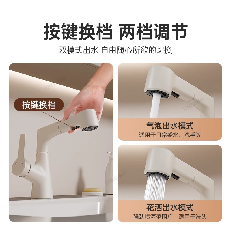 (奶油风)精铜加厚◆升降抽拉款+万向旋转(2档)